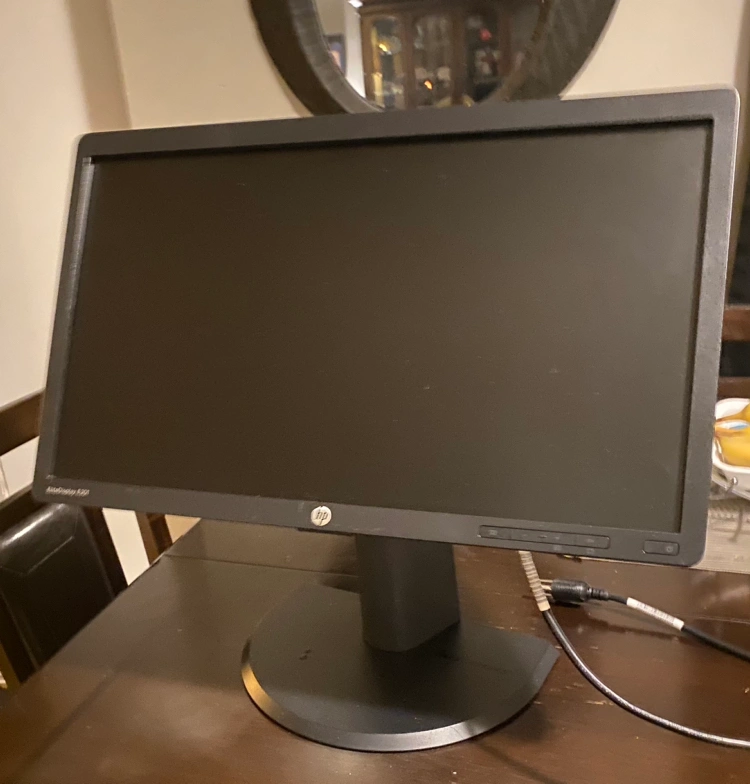 Computer monitor. 20 inch screen. Can be viewed vertically or horizontally. Can be raised up or down by 1 ft by pushing down or pushing up. Great if you need dual monitors.