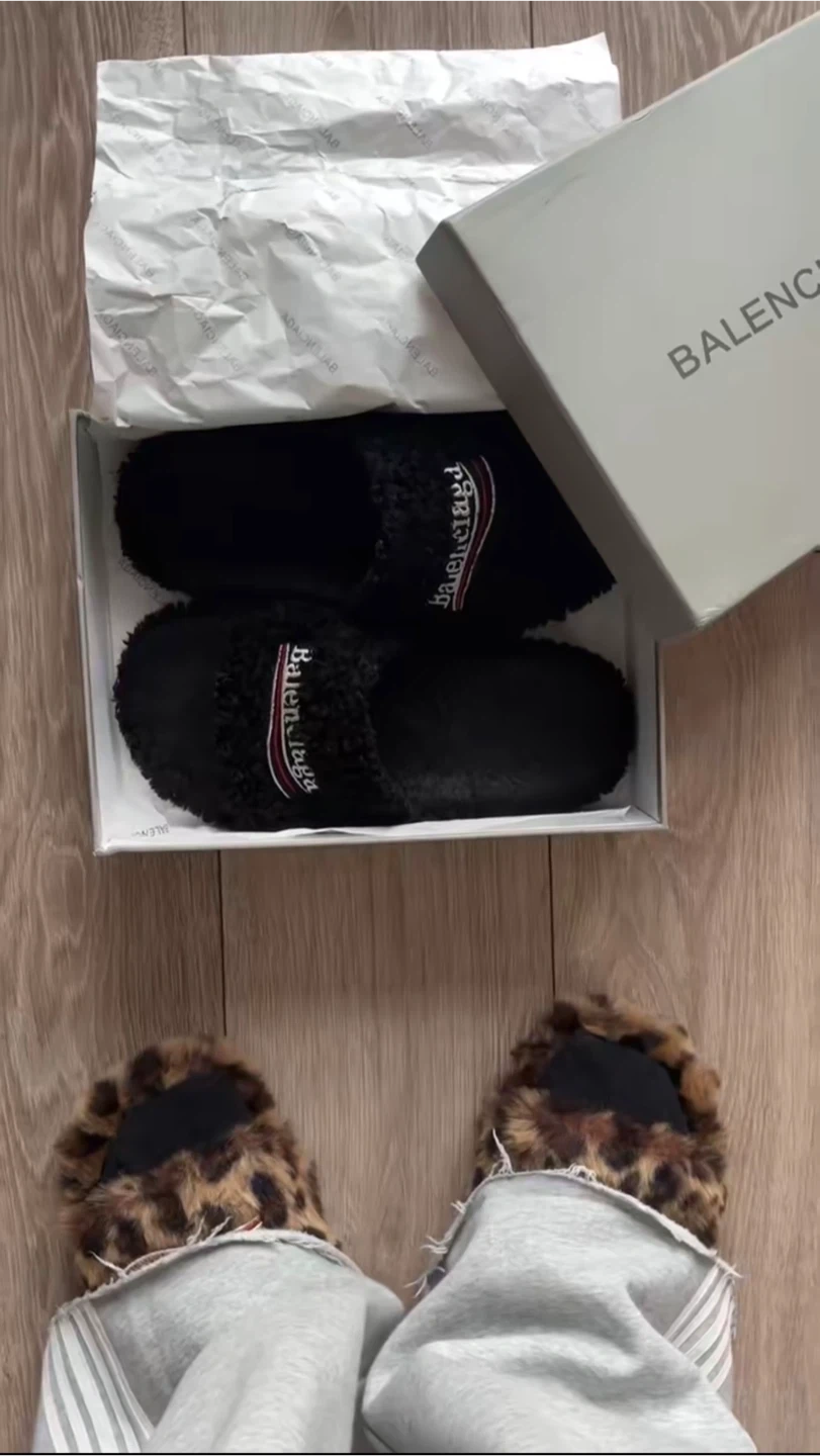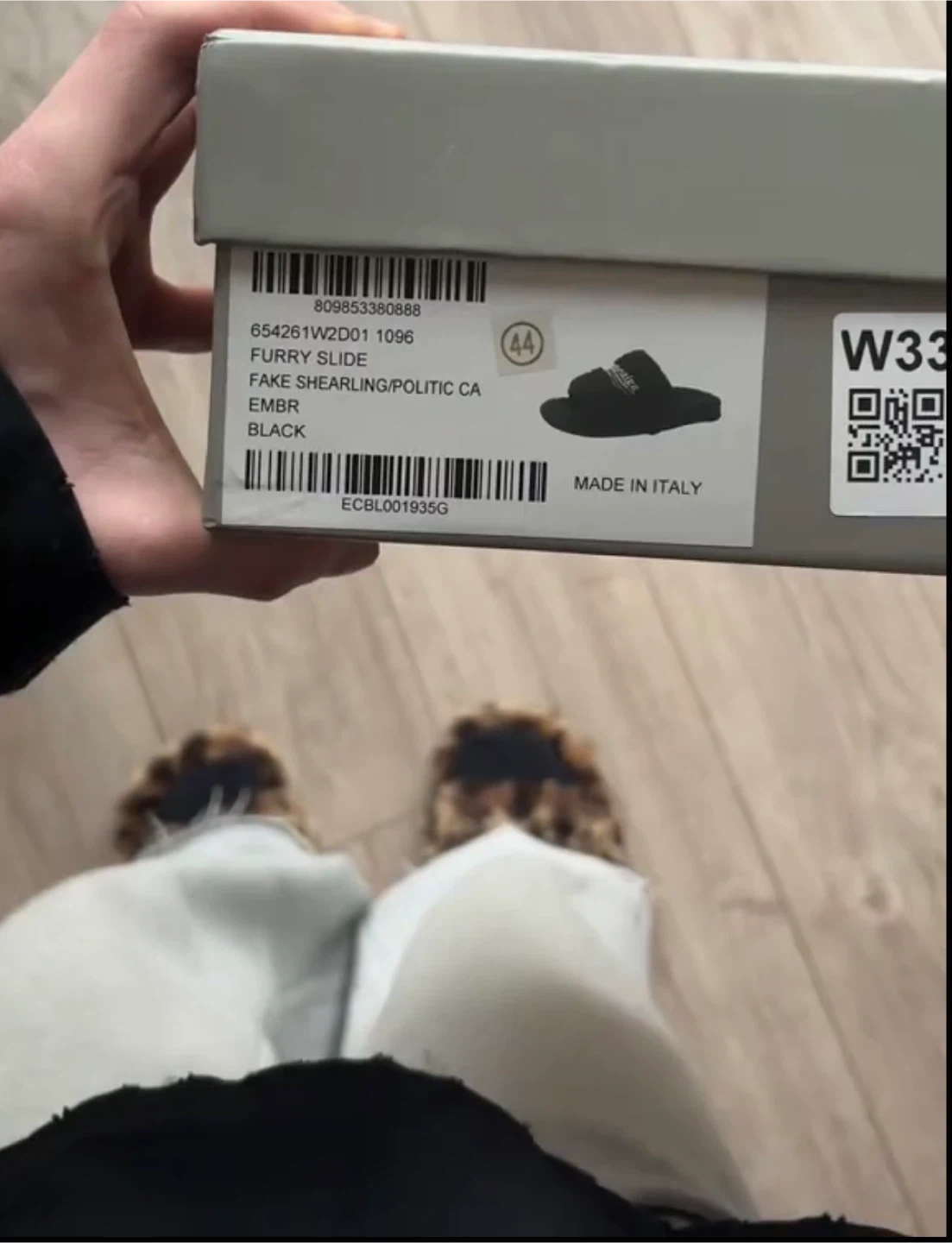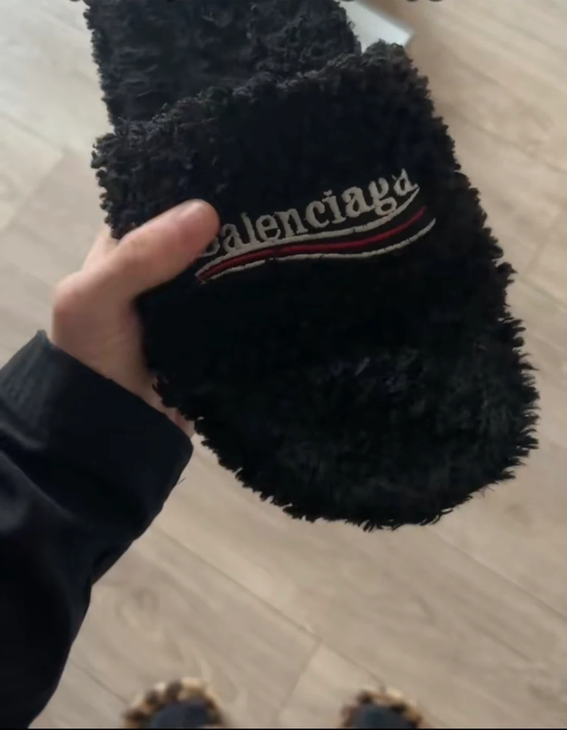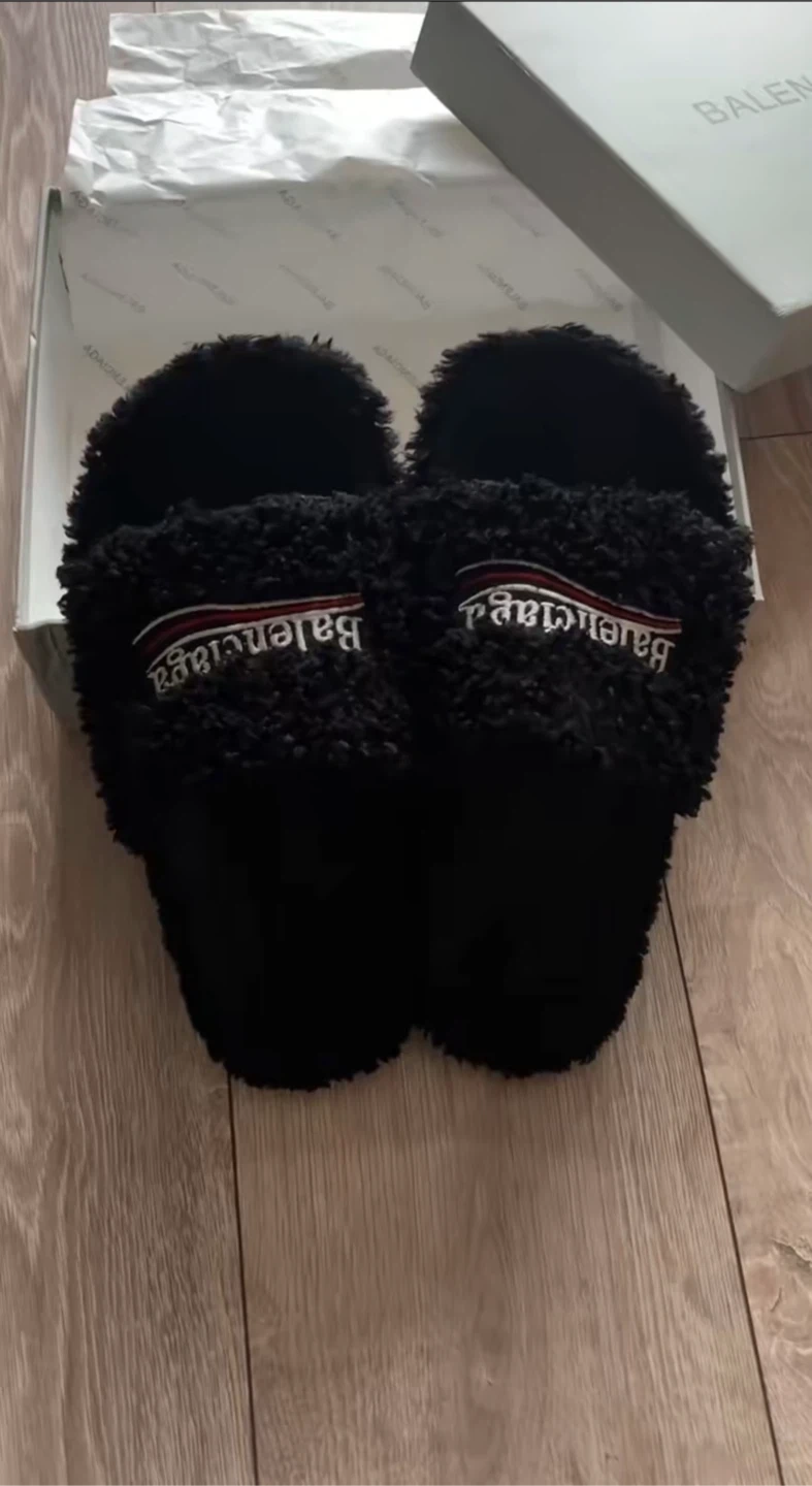 Black Balenciaga furry slides in size 44. Includes original box and tissue paper. Made in Italy.
