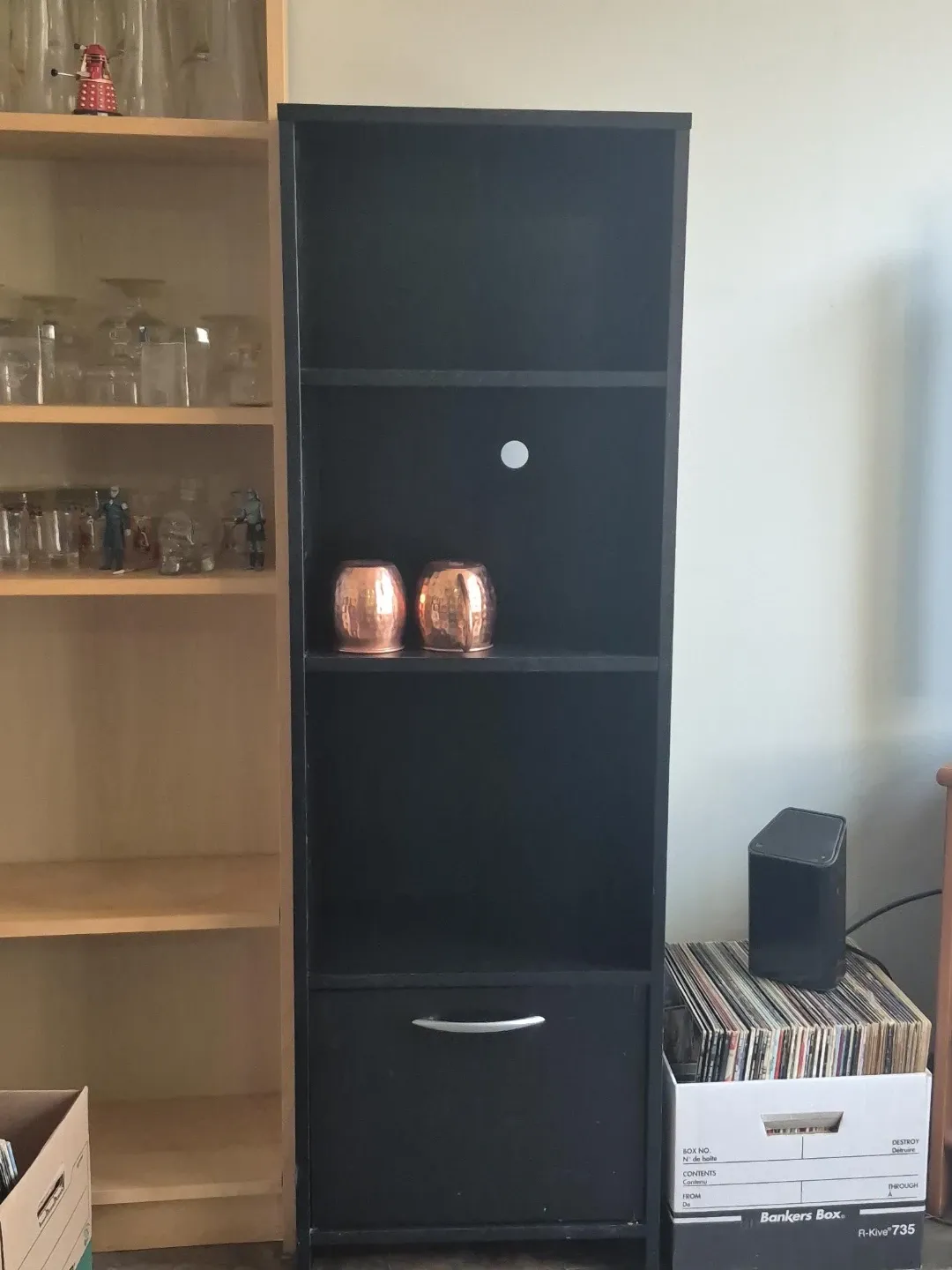 Black Tall Shelf Unit with Drawer