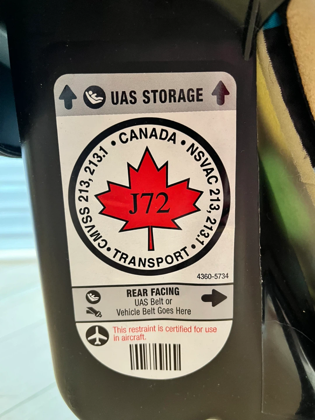 It's rear and forward facing & certified for use in aircraft. The manufacturing date is 2021 December 15.