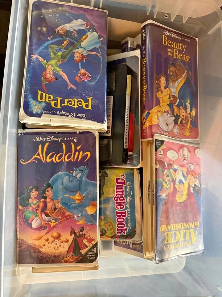 About 70+ VHS tapes, including many Disney classics perfect for kids and grandkids! Also includes titles like Spartacus and Schindler's List. I will not reply to 'Is it still available?' messages.
