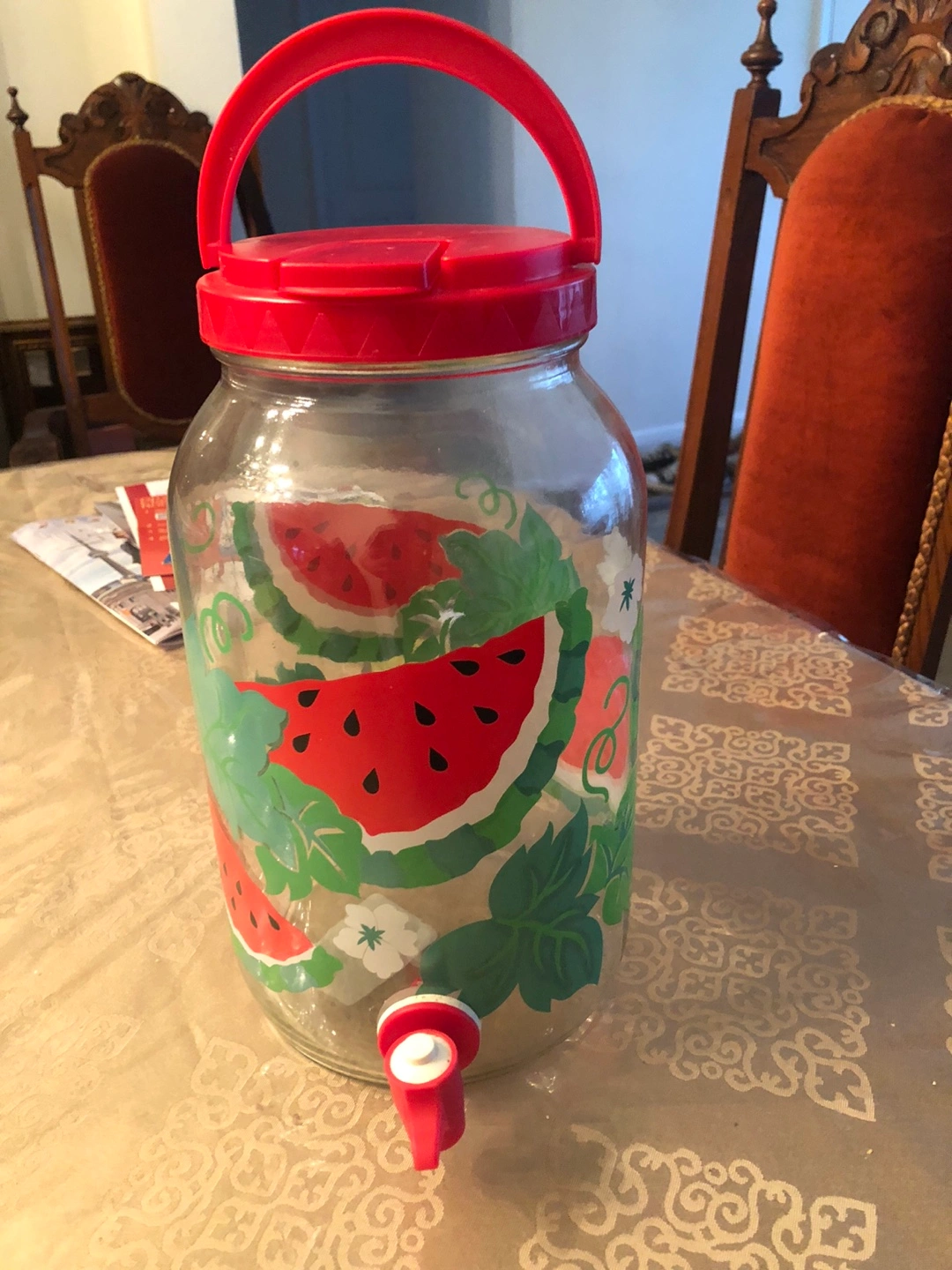 Buy & SellVintage Watermelon Beverage DispenserVintage Watermelon Beverage Dispenser$8Glass beverage dispenser. Features a red plastic lid and handle. Watermelon design. Includes a built-in tap.WHERE TO MEETYork Mills and LeslieView MapSELLERMpDon Mills323 reviews1 chats·0 favorites·15 viewsSEND CHAT TO SELLERHi Mp! I’m interested in your listing.Hi Mp! I’m interested in your listing.Get the Karrot app to chatSign In to chat
