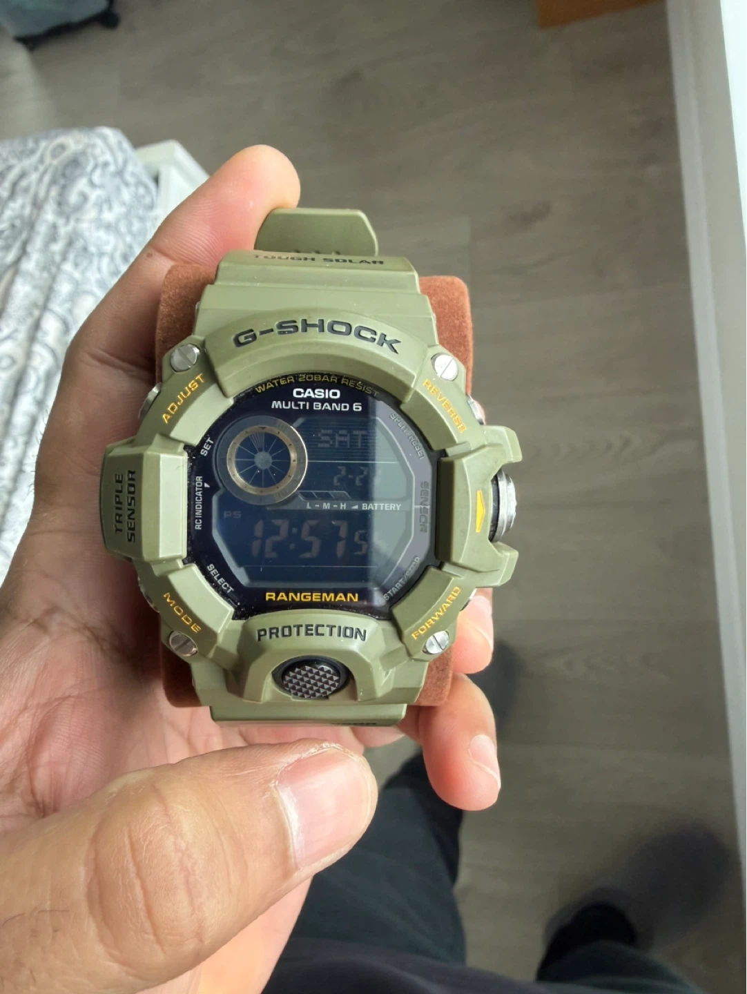 This is a Casio G-Shock Rangeman watch with Tough Solar power and Multi Band 6. It's designed for durability and outdoor use. Water resistant and built to last!