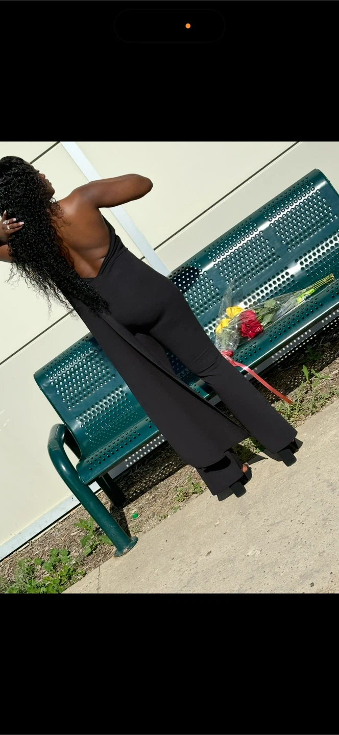 Selling a stylish black one-shoulder jumpsuit. It's in great condition and ready for a new owner! Perfect for a night out or a special occasion.