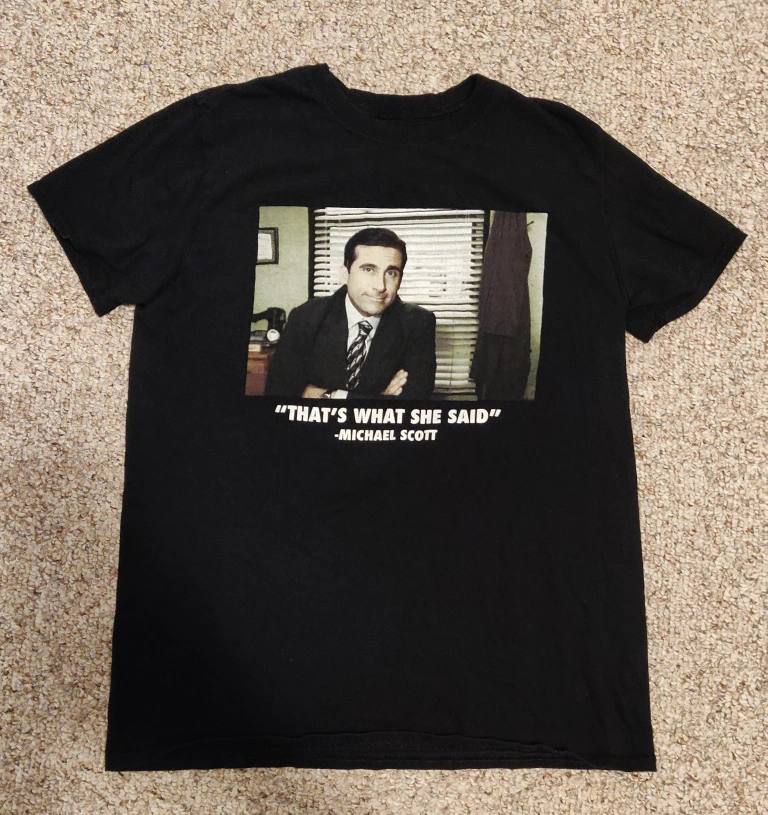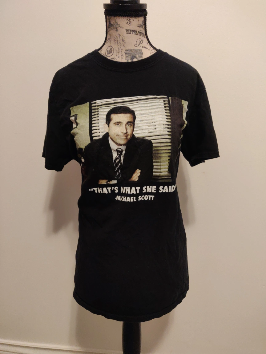 Black short sleeve graphic tee featuring Michael Scott from The Office. Features a picture of Michael Scott and his famous quote. Men's size.