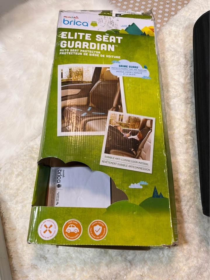 Protect your car seats from dirt, spills & wear! This Brica Elite Seat Guardian is a high-quality car seat protector designed for families with kids. It has a crash-tested design, protects against dirt, spills & moisture, and features an anti-slip grip to stay in place. It also has extra padding for durability and fits most car seats (front & rear facing). Easy to install & clean. Perfect for baby car seats, kids booster seats, and protects from dirty shoes. Condition: Open box / Like new. Pickup: Kaladar Ave, Ottawa. Payment options: Cash, E-transfer. Let me know if you're interested!