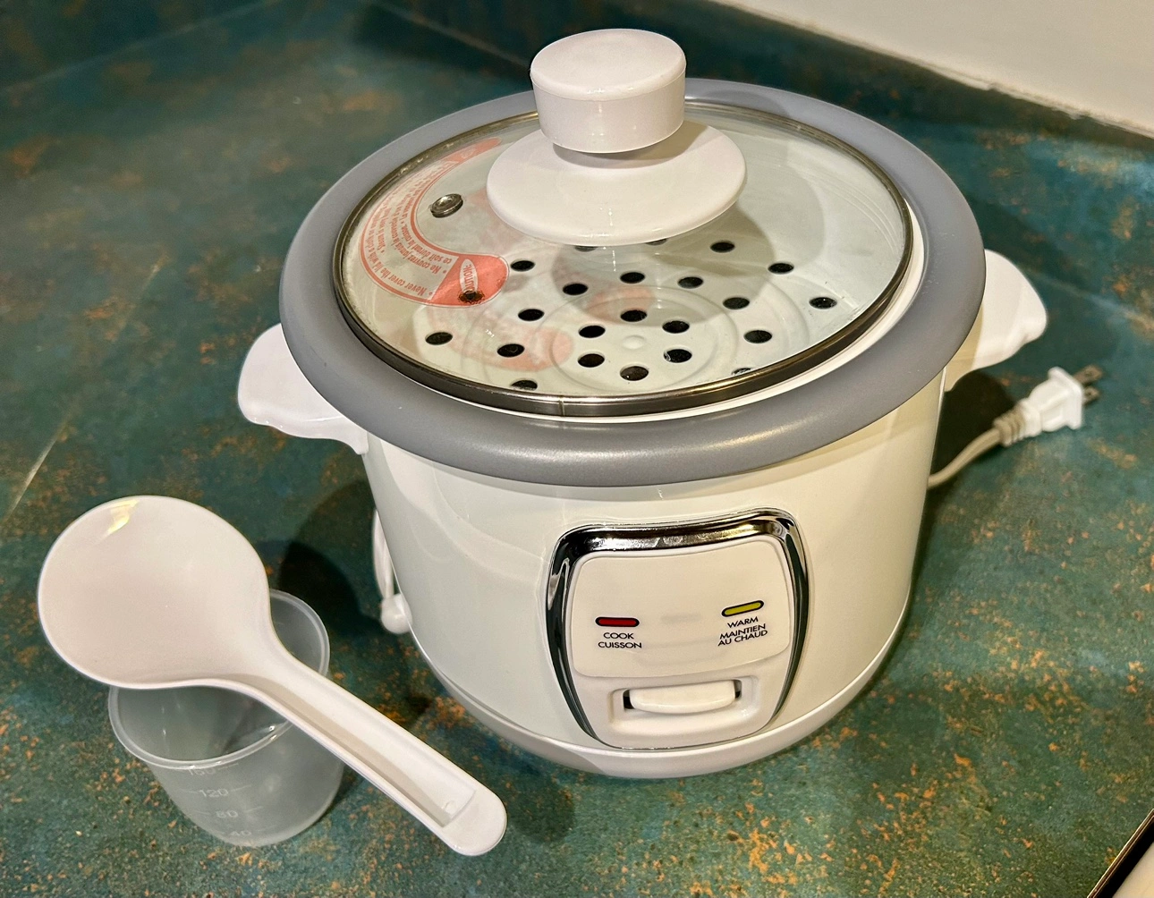 Bought this from superstore. Includes measuring cup and rice spatula.