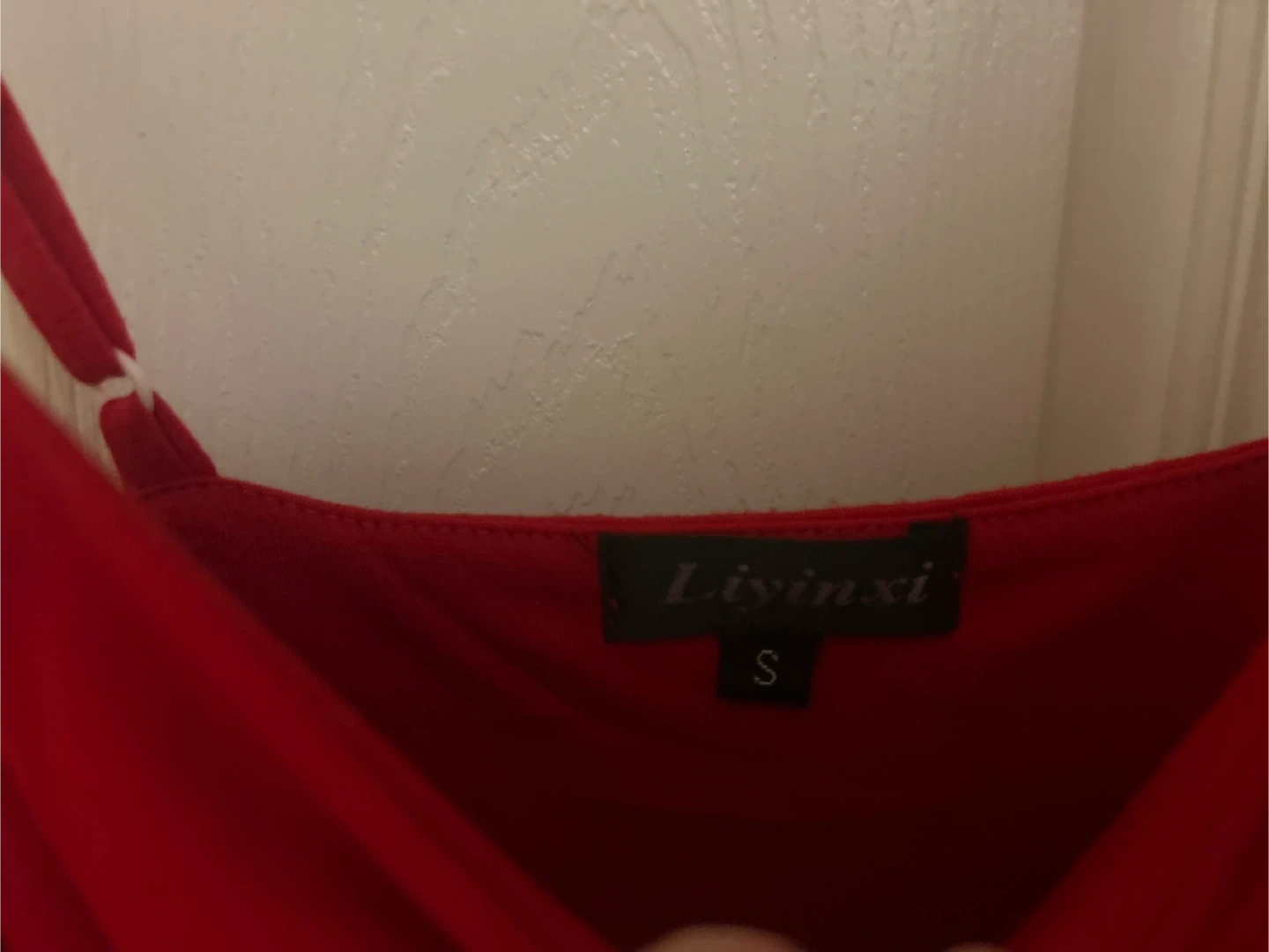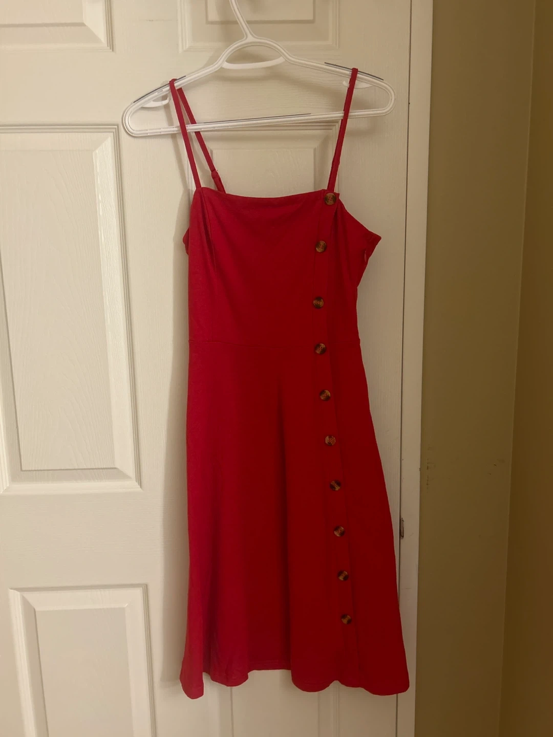 This Liyinxi sundress is a vibrant red colour. It's a size small with adjustable spaghetti straps and decorative buttons down the front. Wore for once.