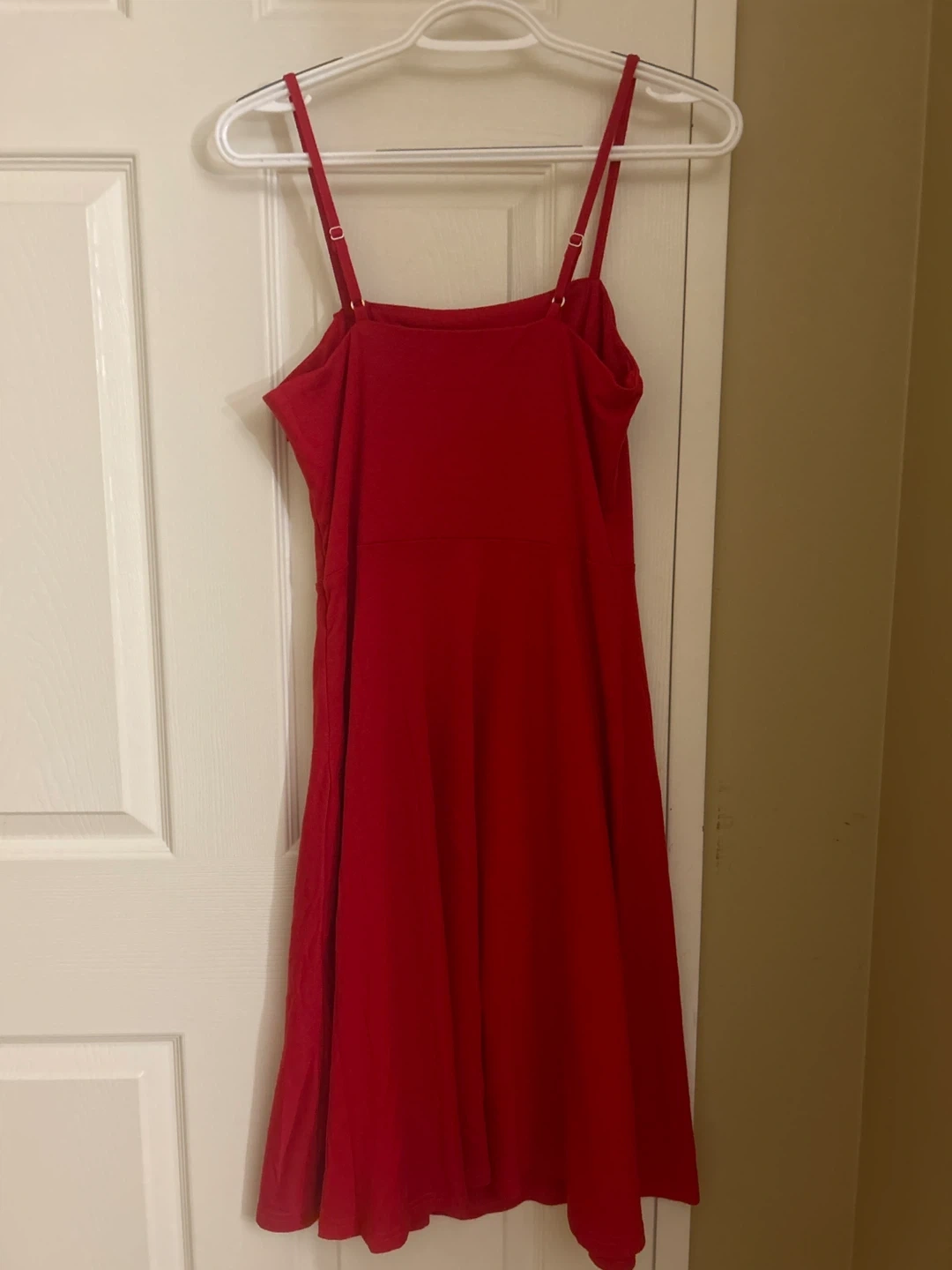 This Liyinxi sundress is a vibrant red colour. It's a size small with adjustable spaghetti straps and decorative buttons down the front. Wore for once.