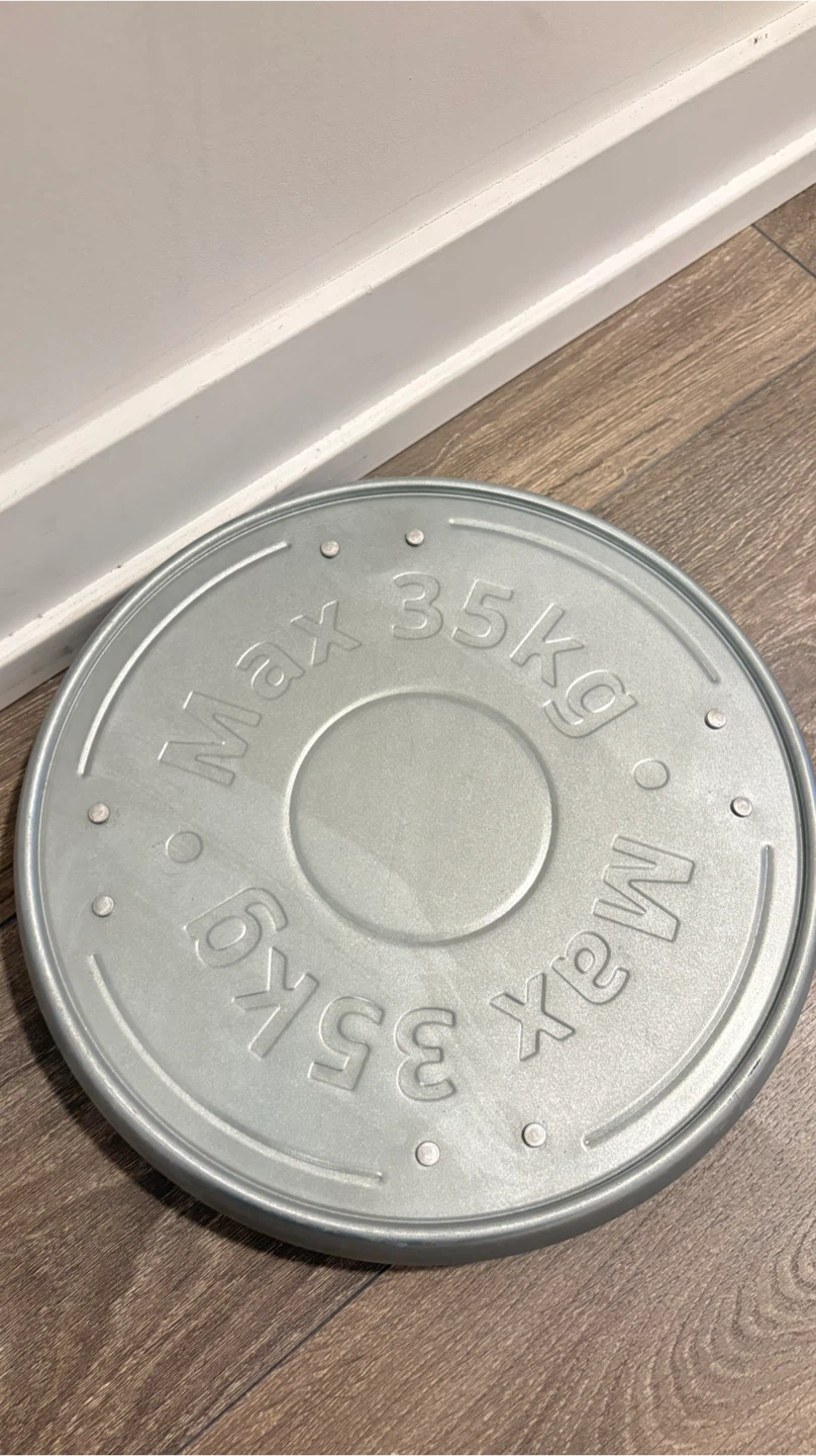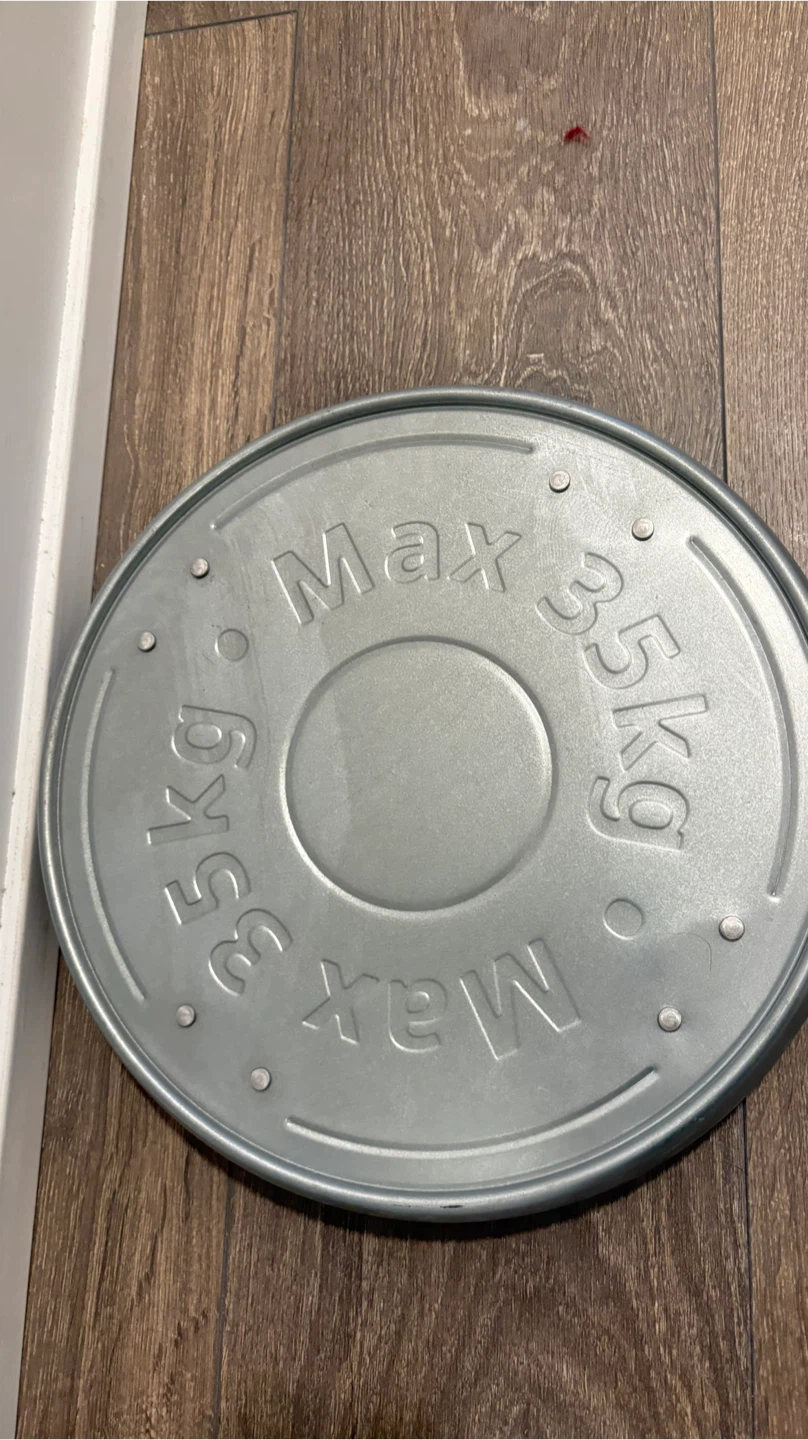 This is the IKEA ÅKERBÄR plant caddy. It's made of metal and has a maximum load capacity of 35kg. The diameter is 31 cm.