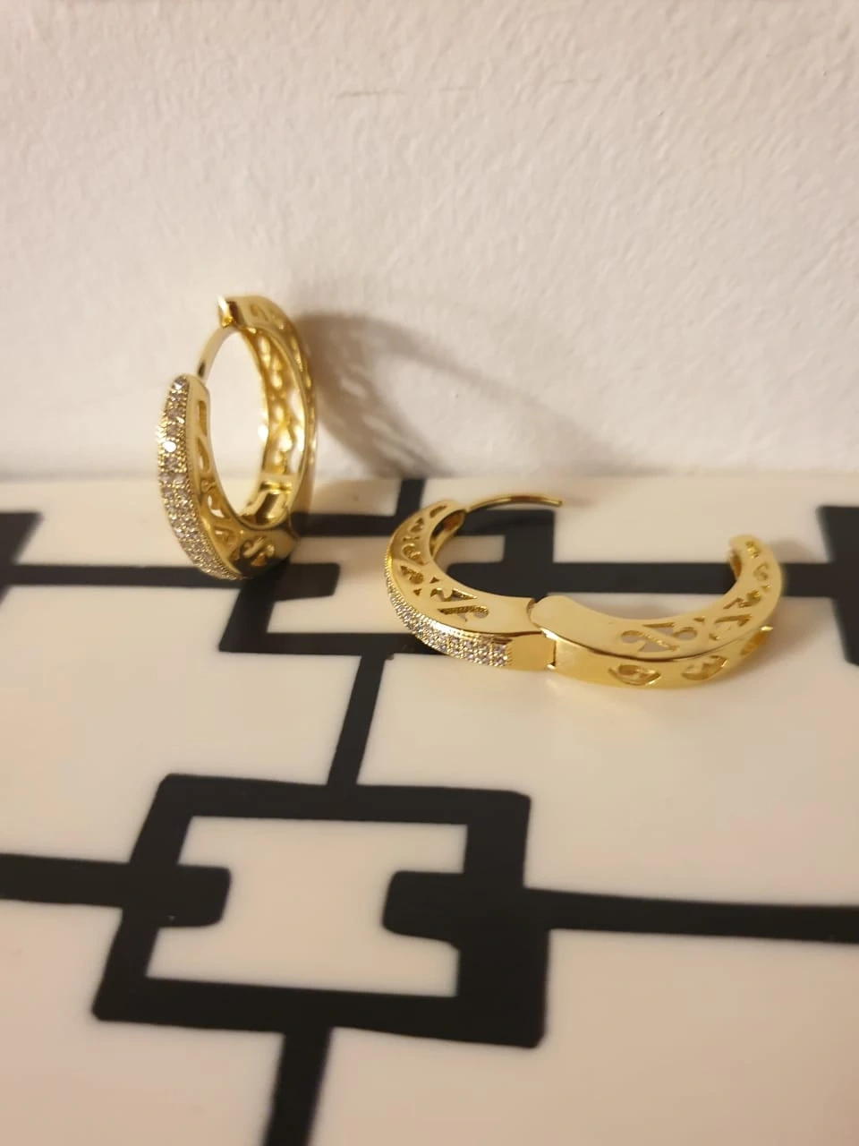 Gold hoop earrings, perfect for everyday wear. The earrings have a hinge closure.