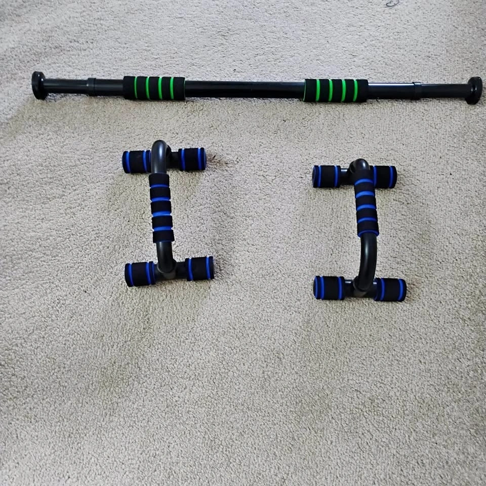 Both items are brand new. I used the push-up handles slightly, but they work perfectly well overall. The pull-up bar is unused and has no defects.