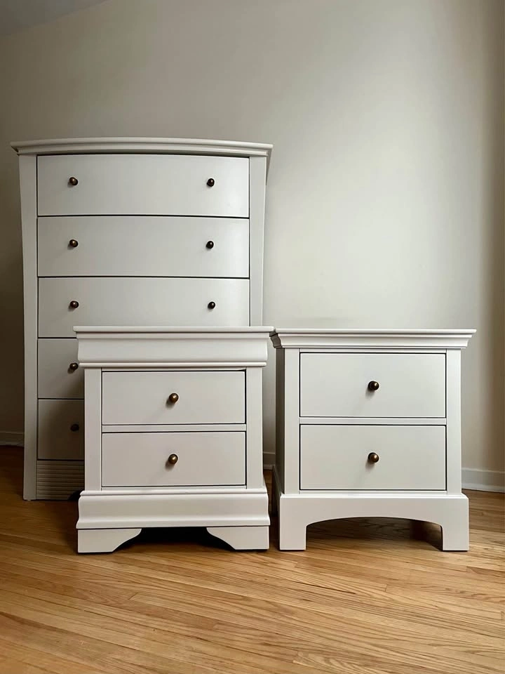 Refinished Bedroom Set – Modern | Dresser + 2 Nightstands
