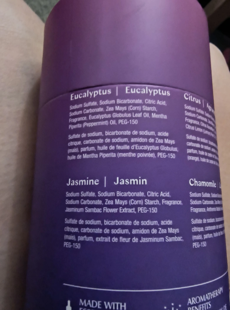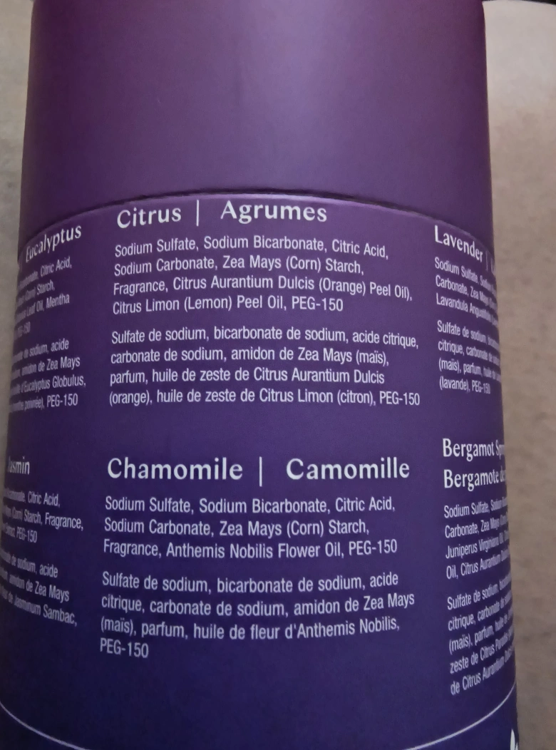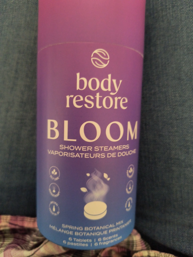 Here is a set of shower steamers in various scents, great for creating a relaxing spa experience. The box is mostly purple and has white text, and it also mentions that it is a spring botanical mix.