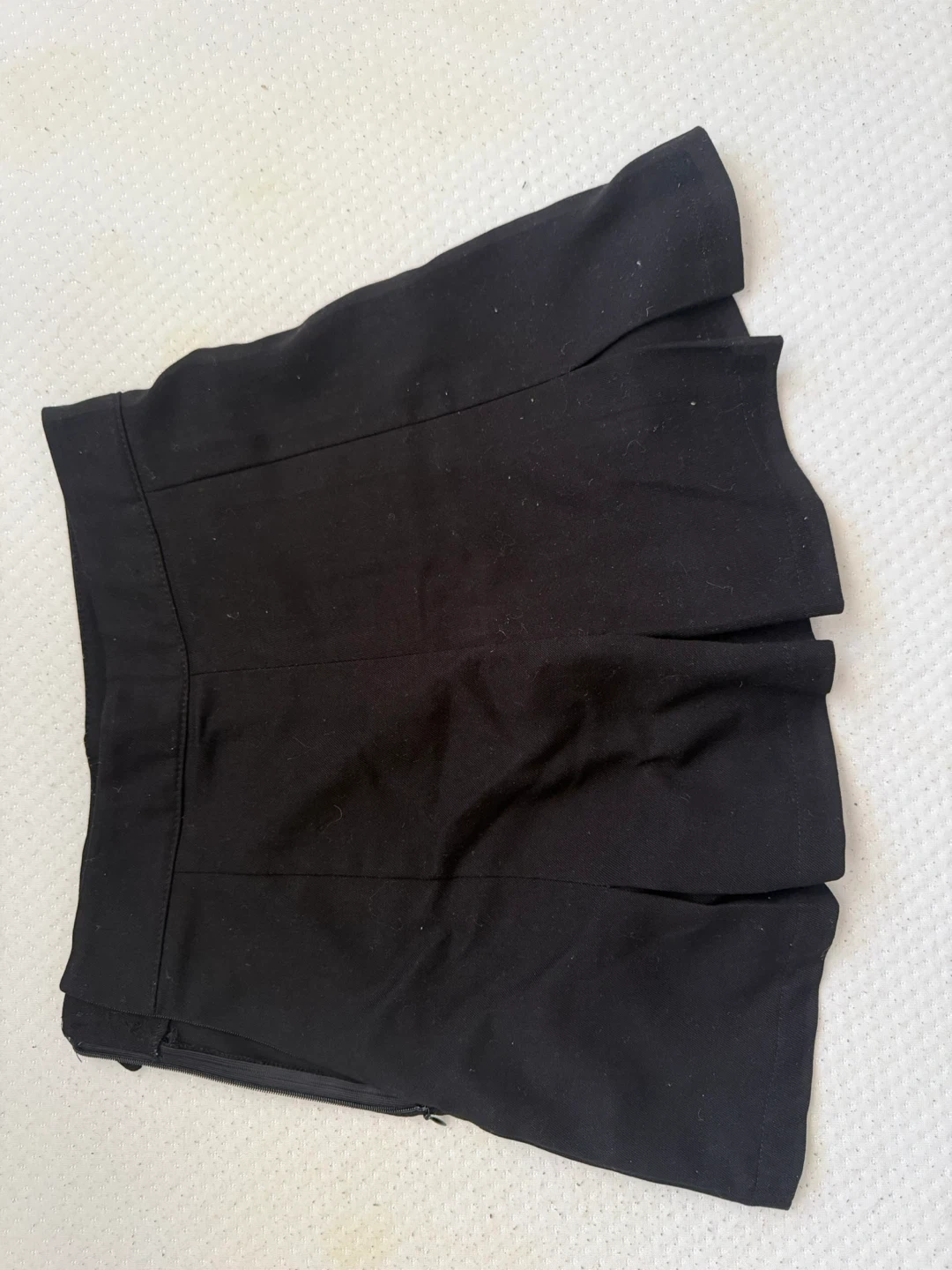 This black pleated mini skirt is from Bershka. It features a side zipper and a decorative buckle at the waist. Made in Turkey. Size US 26 / MEX 26 / EUR S.