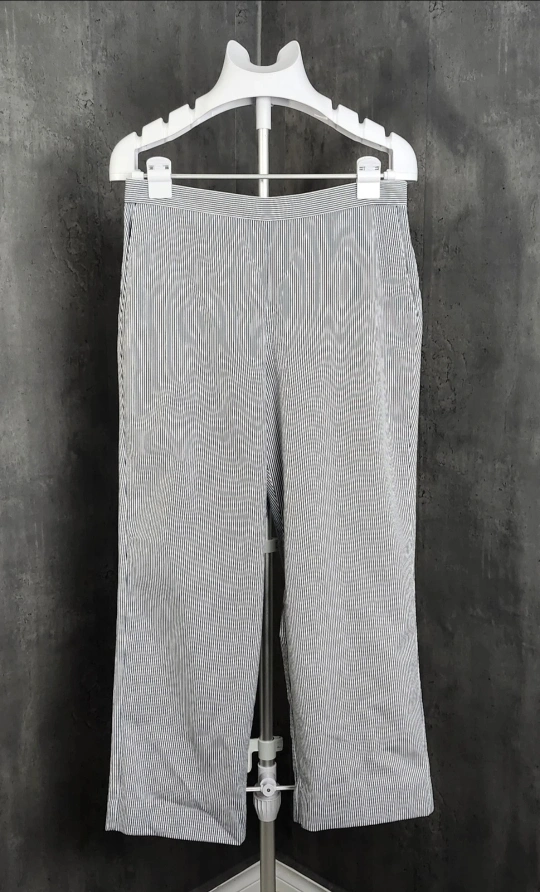 Alfred Dunner Pull On Striped Capri Pants Dark Grey White for Women 12 L