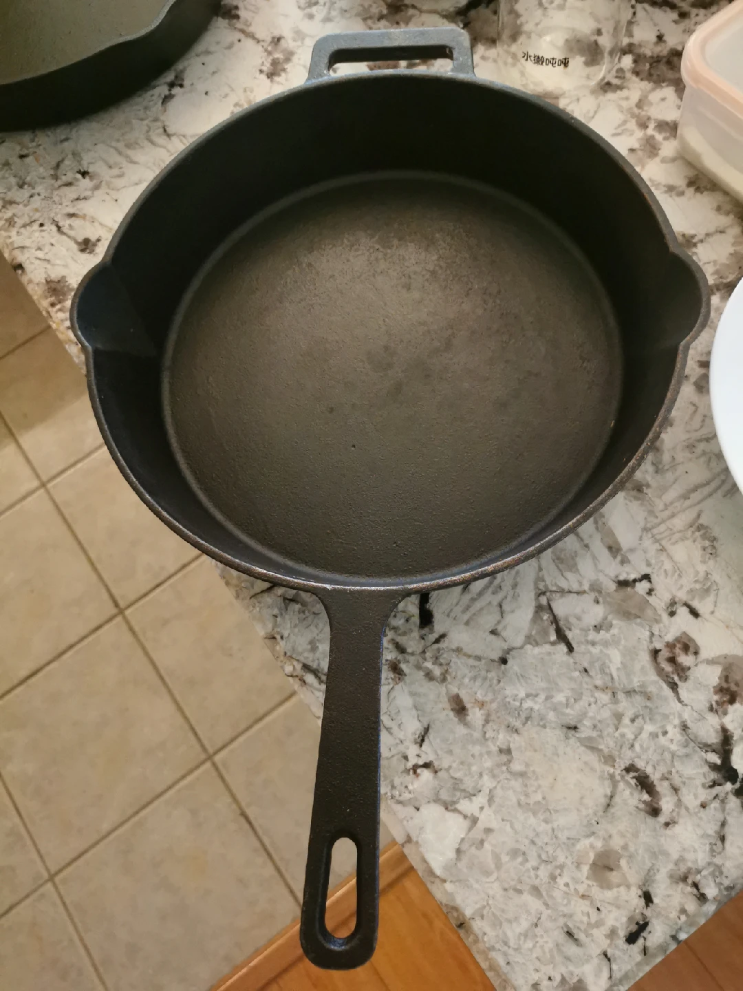 Selling a well-seasoned cast iron skillet. It measures about 12 inches in diameter. It's perfect for cooking up your favourite meals and will last a lifetime with proper care