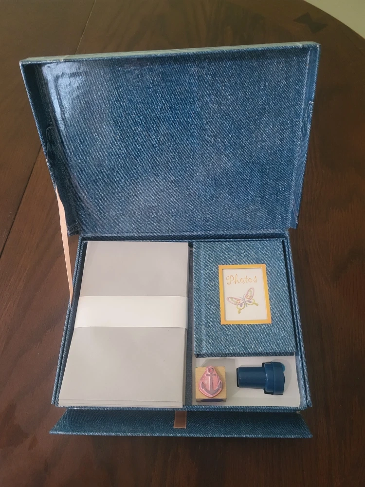This kit includes a photo album, scrapbook pages, and a stamp. Perfect for preserving memories and personalizing with photos. Suitable for ages 3 and up.