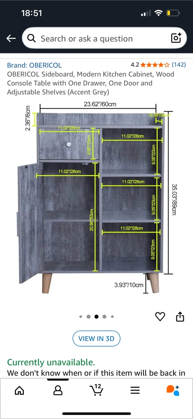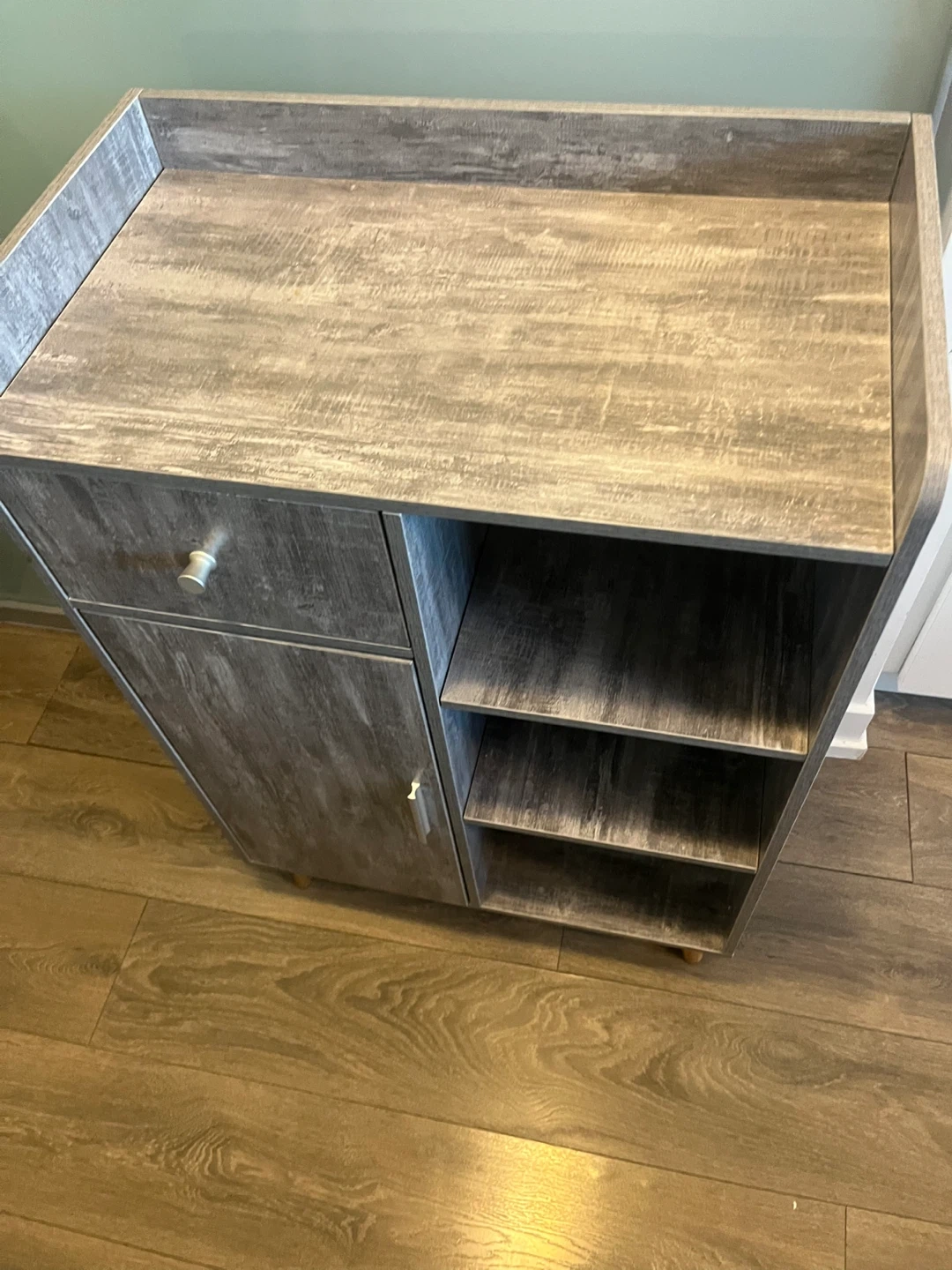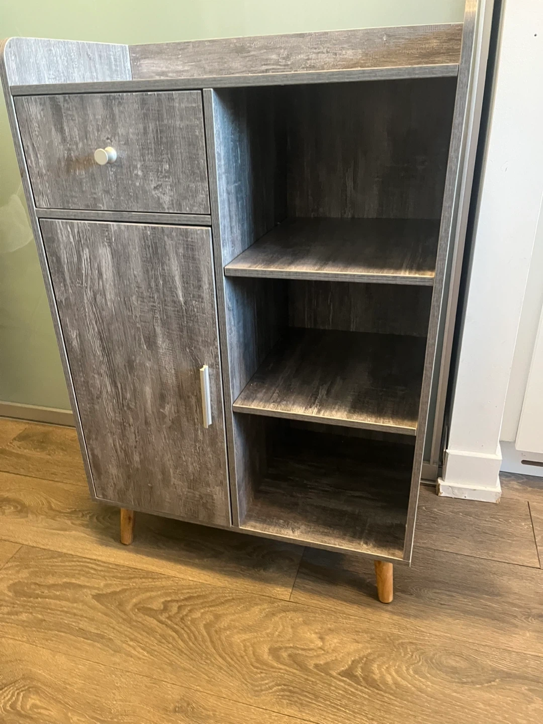 Selling a modern OBERICOL sideboard in accent grey. It features a wood console table design with one drawer, one door, and adjustable shelves. Perfect for adding stylish storage to your kitchen or living space!