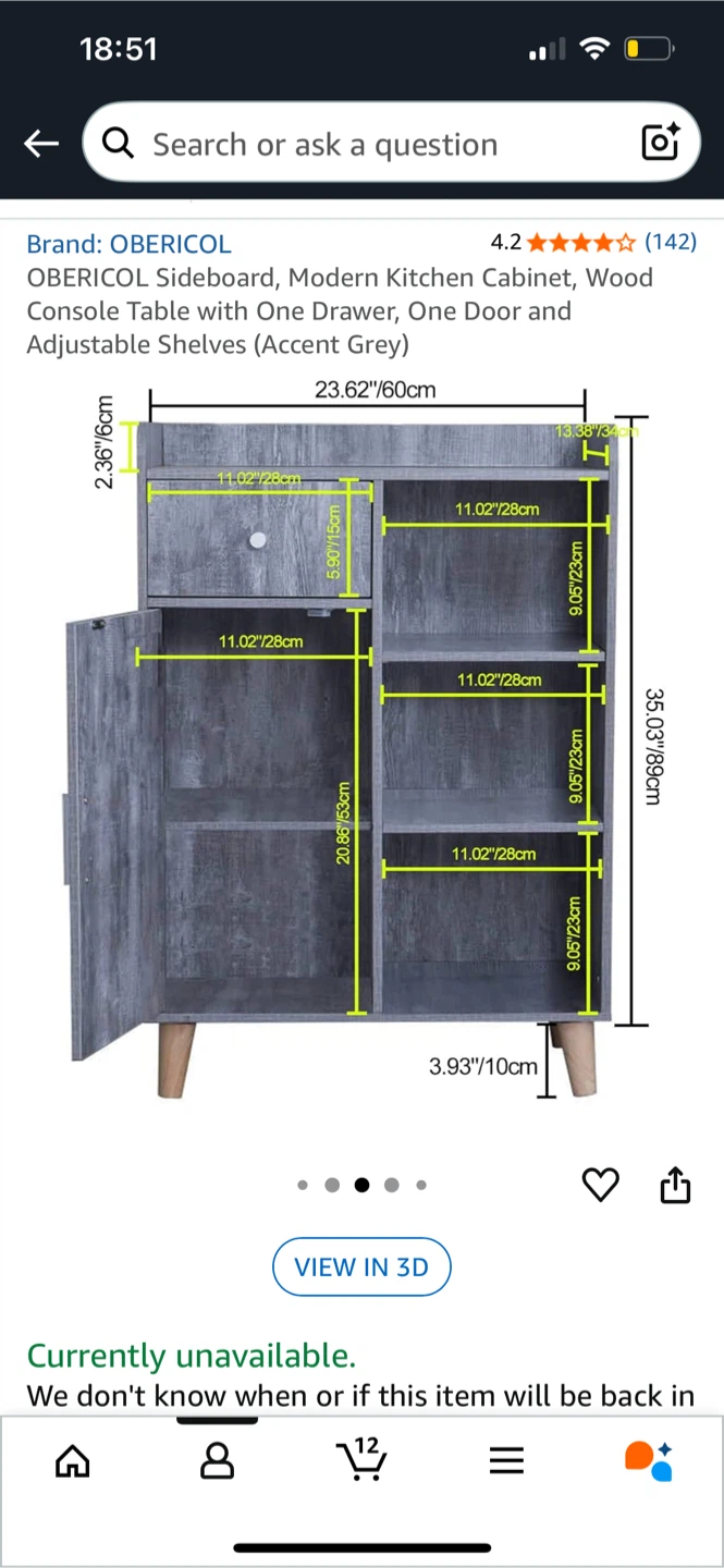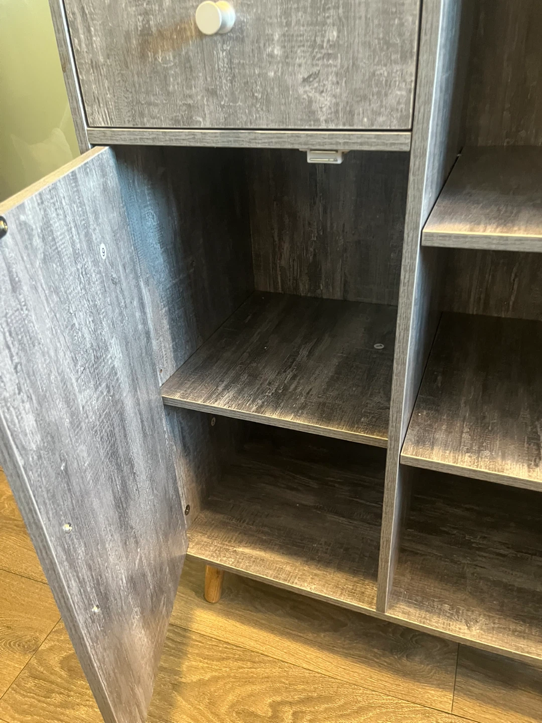 Selling a modern OBERICOL sideboard in accent grey. It features a wood console table design with one drawer, one door, and adjustable shelves. Perfect for adding stylish storage to your kitchen or living space!