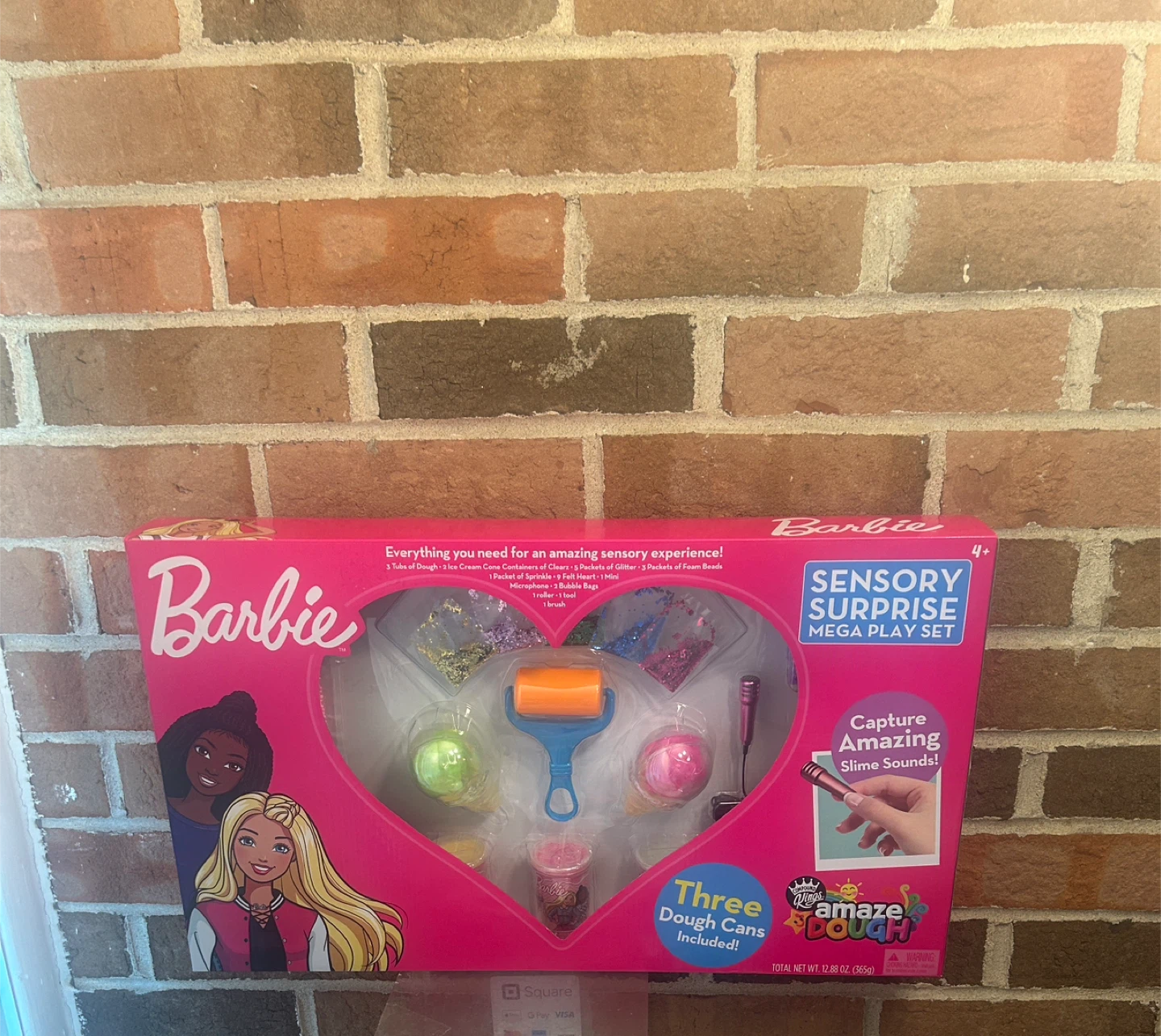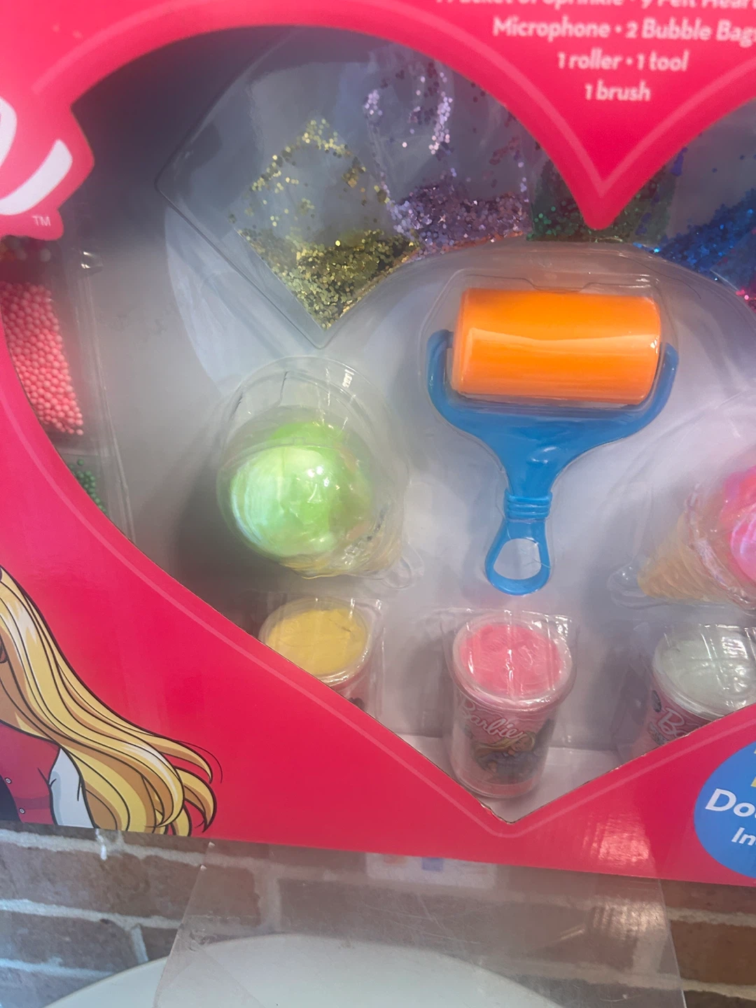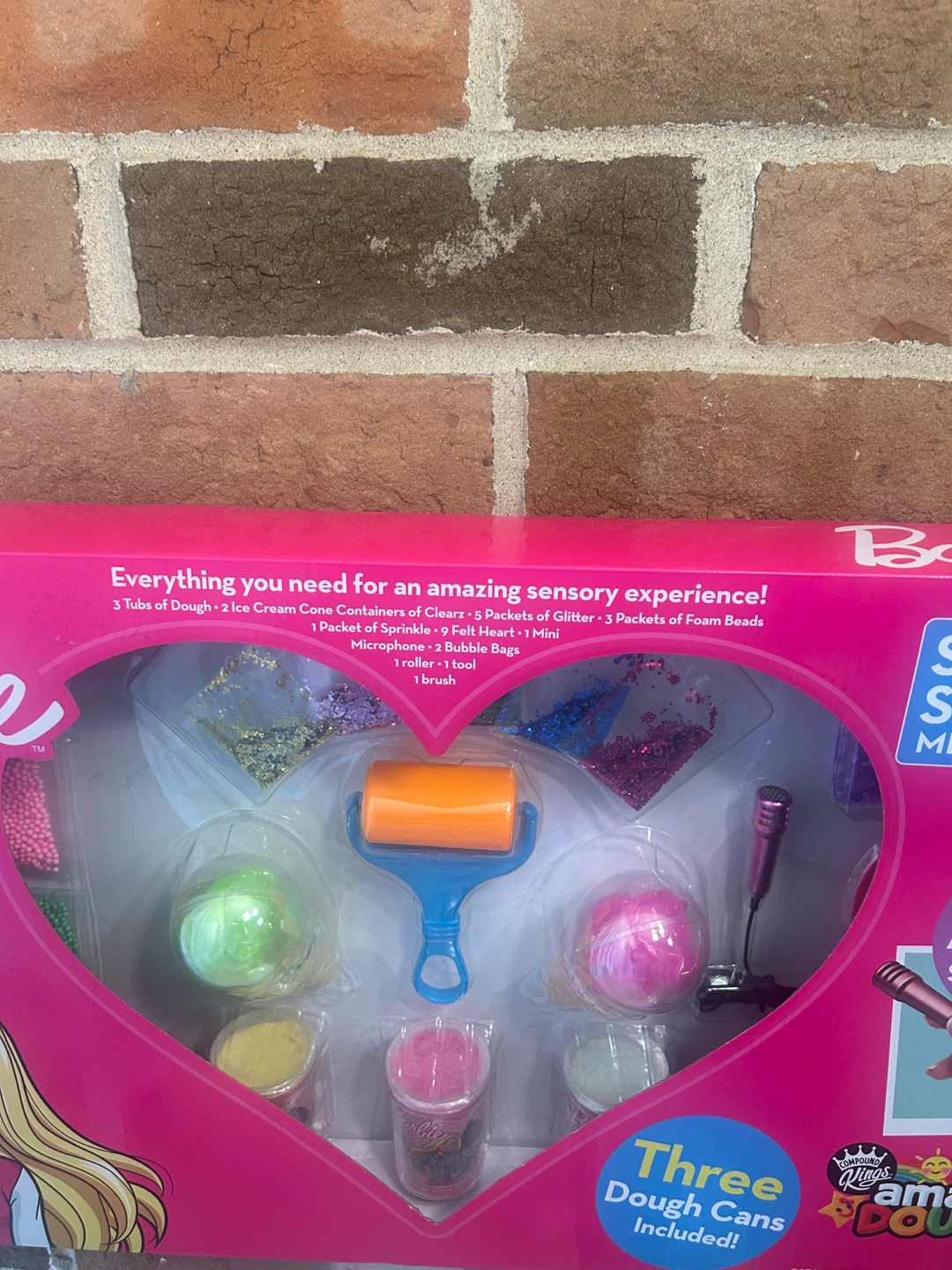 Create an amazing sensory experience with this Barbie Mega Play Set. It includes 3 tubs of dough, 2 ice cream cone containers, 5 packets of glitter, 3 packets of foam beads, 1 packet of sprinkles, felt hearts, a microphone, 2 bubble bags, a roller, and a brush. Great for imaginative play and sensory exploration!