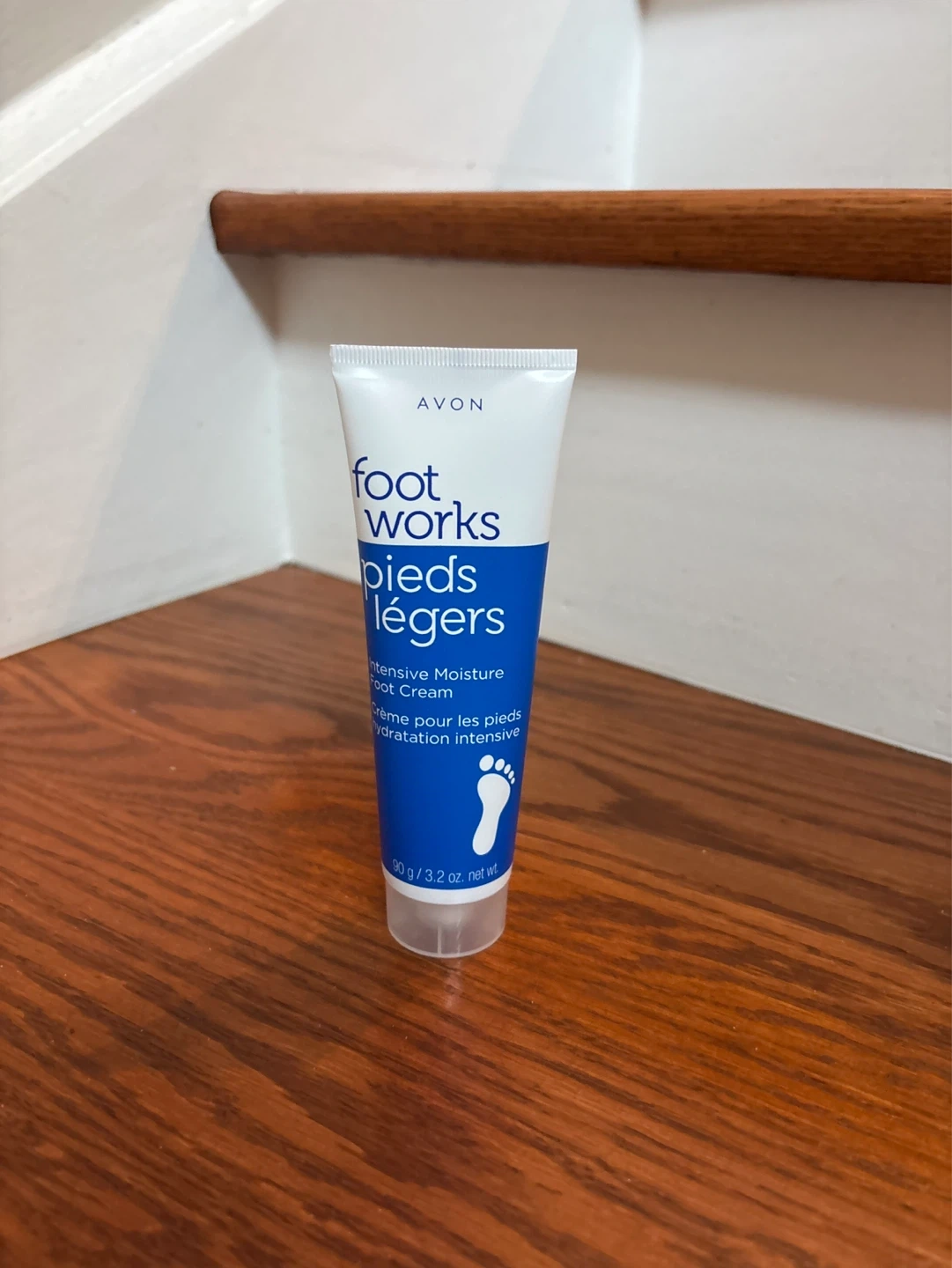 Avon Foot Works Intensive Moisture Foot Cream in a 90g tube. This cream provides intensive hydration for your feet. It's perfect for soothing dry or rough skin.