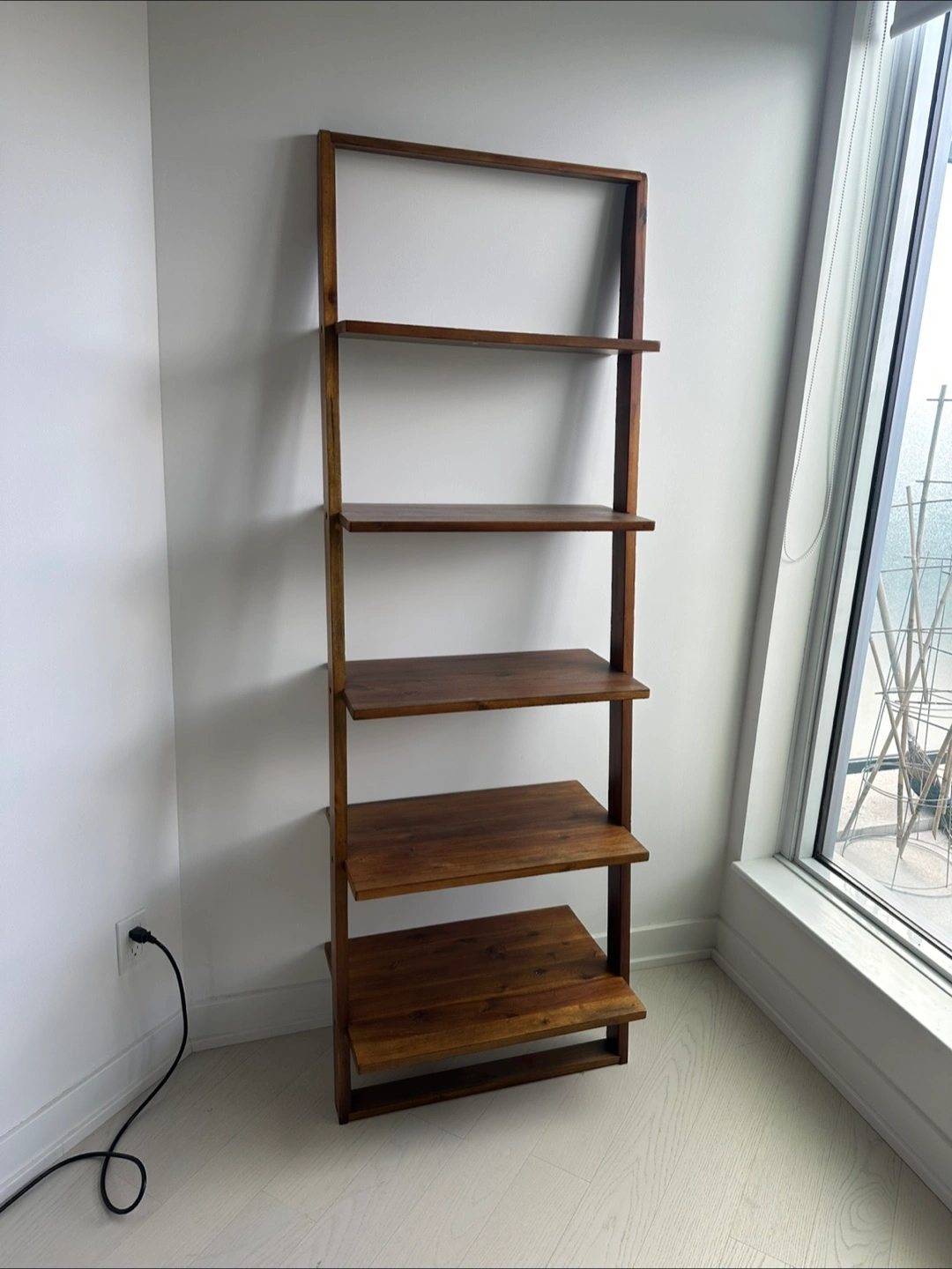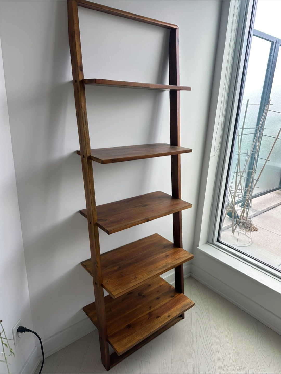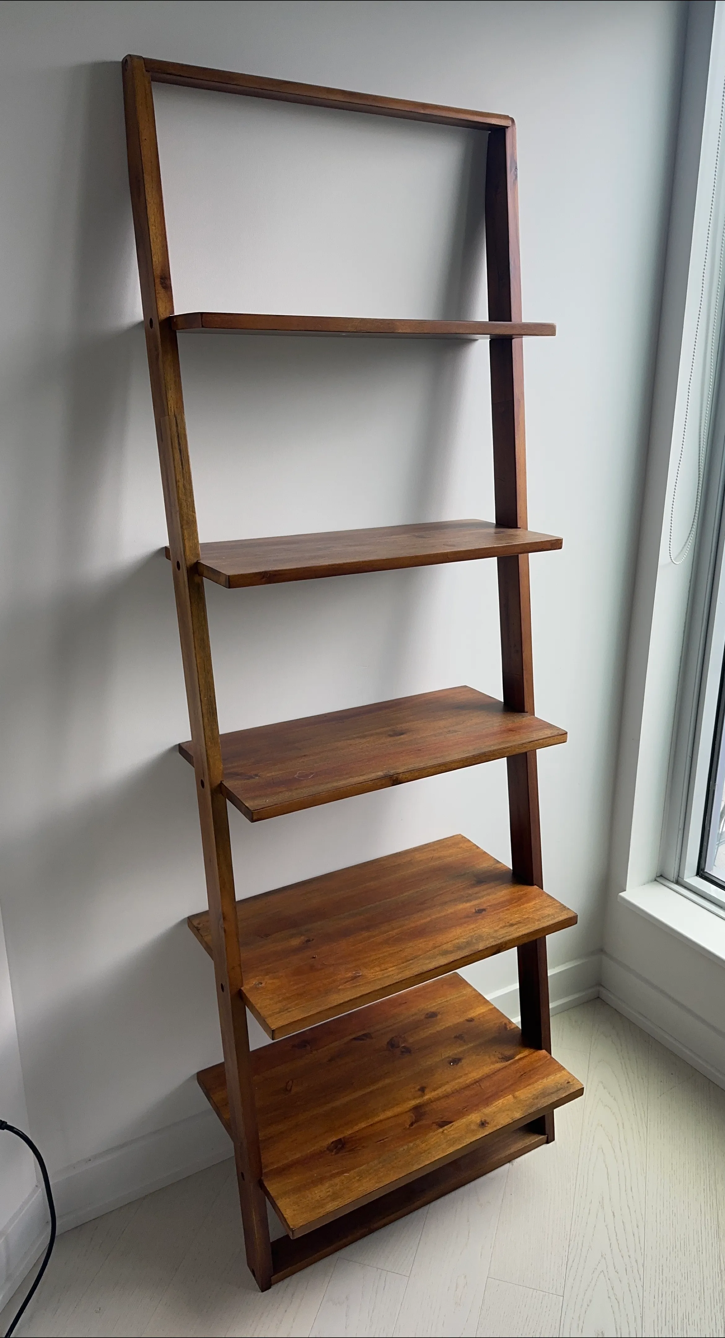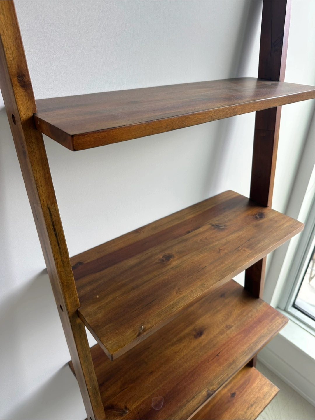 Here's a stylish wooden ladder shelf! It's in great condition and ready to add some rustic charm to your space. Perfect for displaying books, plants, or your favourite decor items