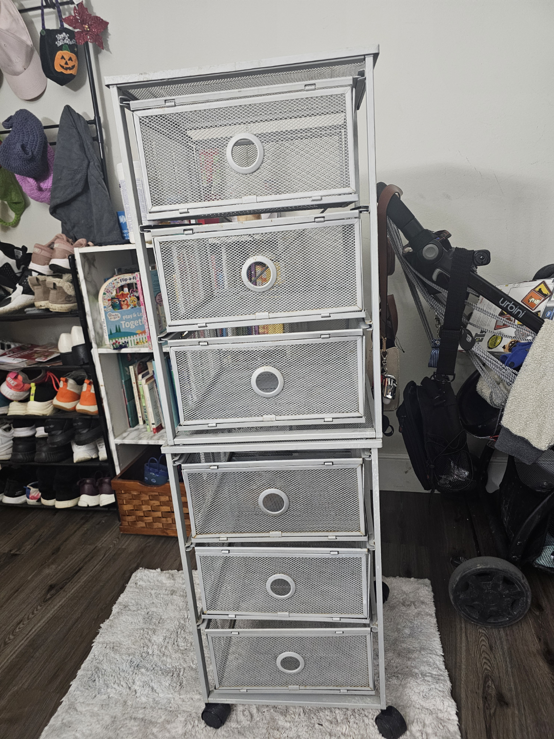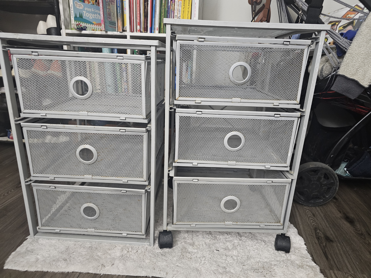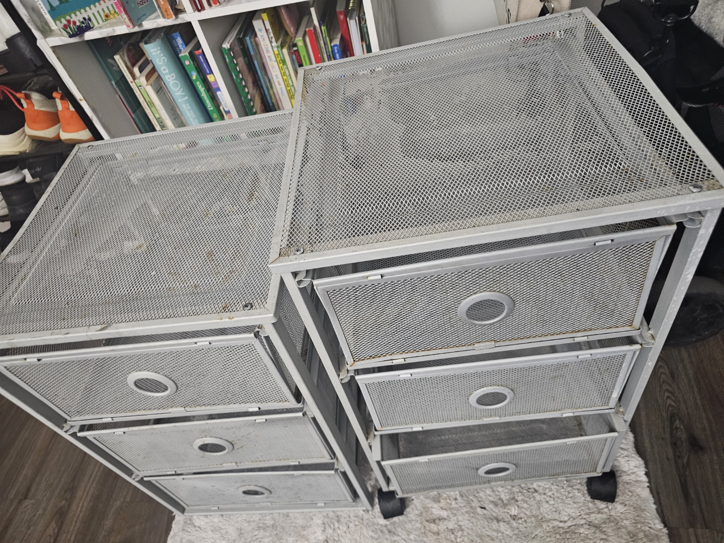 Metal rolling cart. Five drawers. Grey colour. Some wear and tear, repainting might work. Great for organizing. Cash only, pick up near Adelaide and huron.