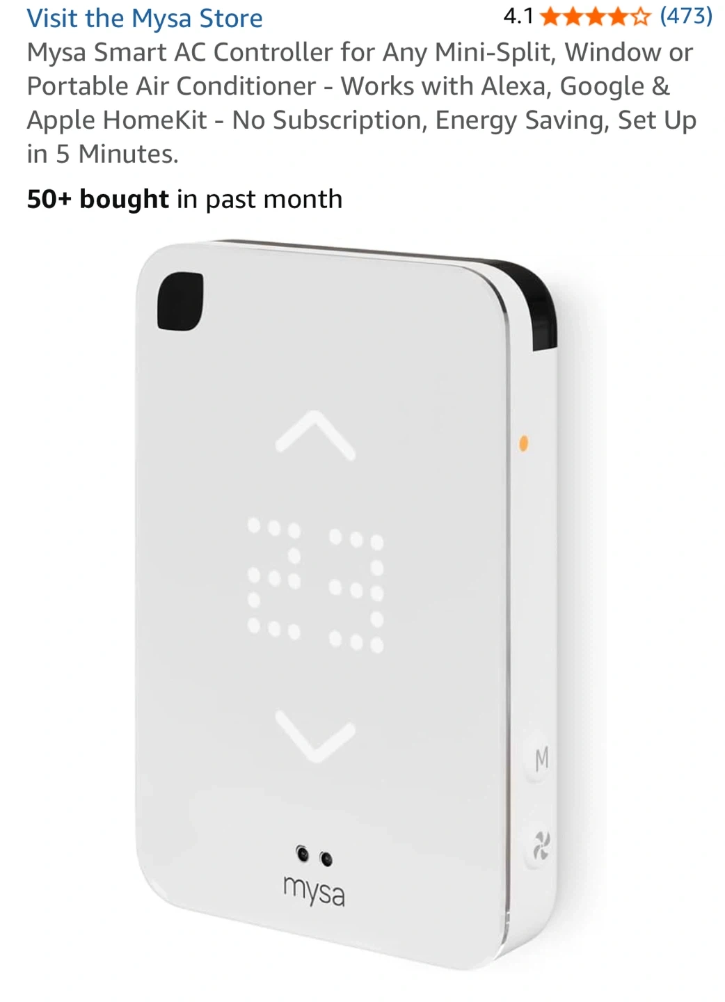 Selling a brand new Mysa Smart AC Controller! Works with mini-split, window, or portable air conditioners. It's compatible with Alexa, Google & Apple HomeKit. Set it up in just 5 minutes and enjoy energy savings without any subscription fees. Box is included!