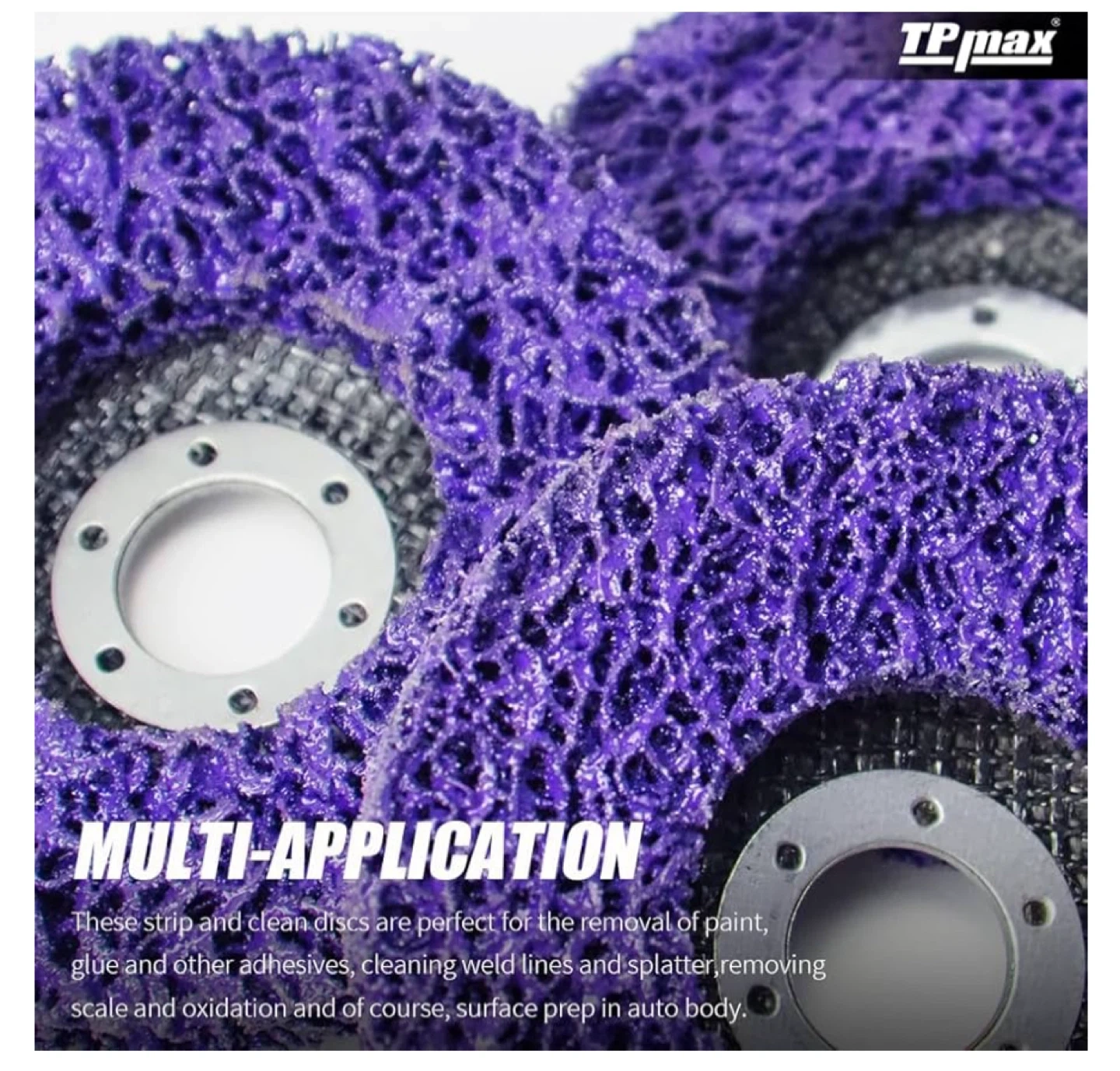 I'm selling a new set of TP-Max strip discs. They are 5 inch x 7/8 inch and are excellent for removing rust, strips paint, and cleans welds. They feature silicon carbide grit to enable quick grinding with less pressure and fiber-act as a cushion to prevent over-grinding.