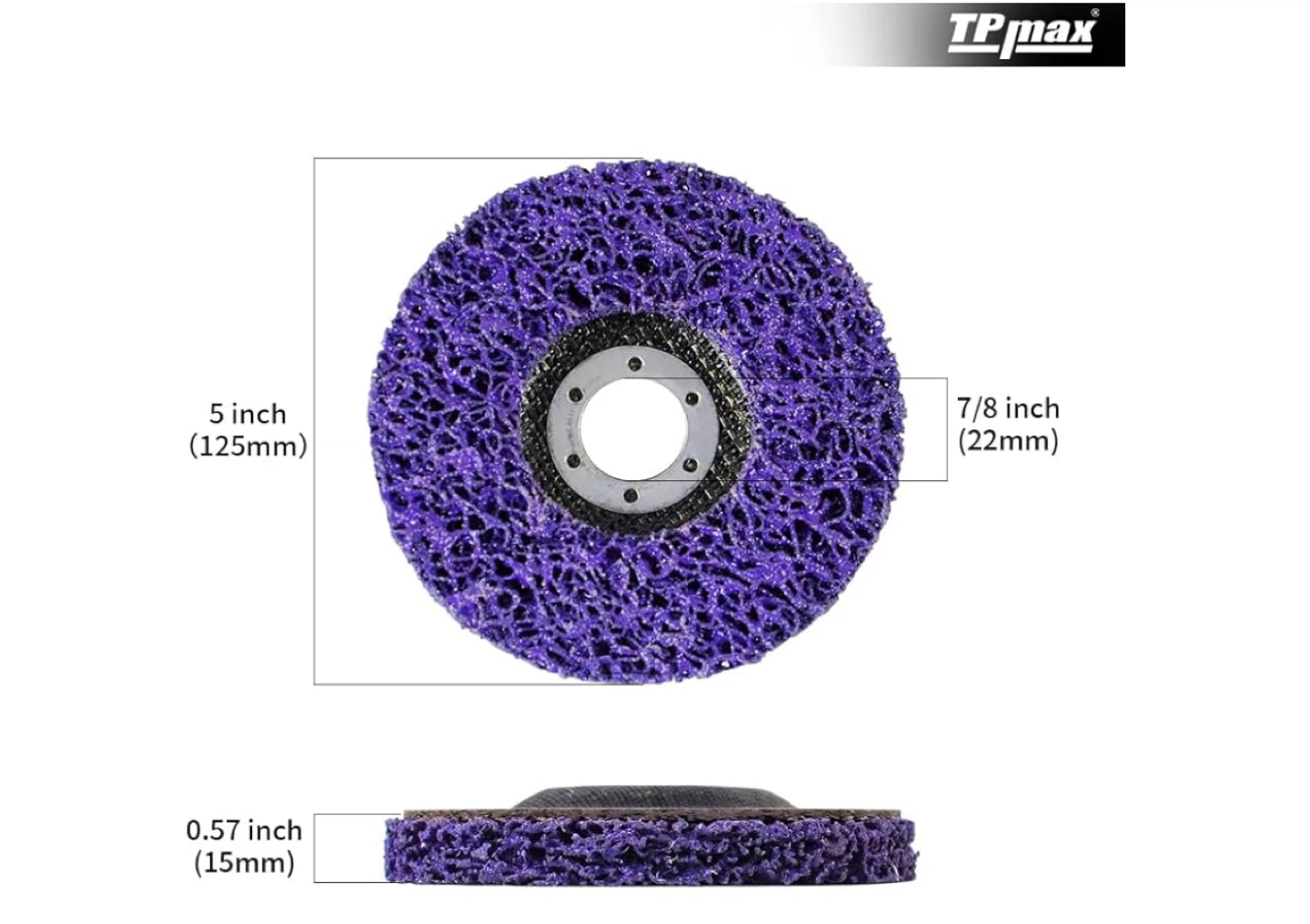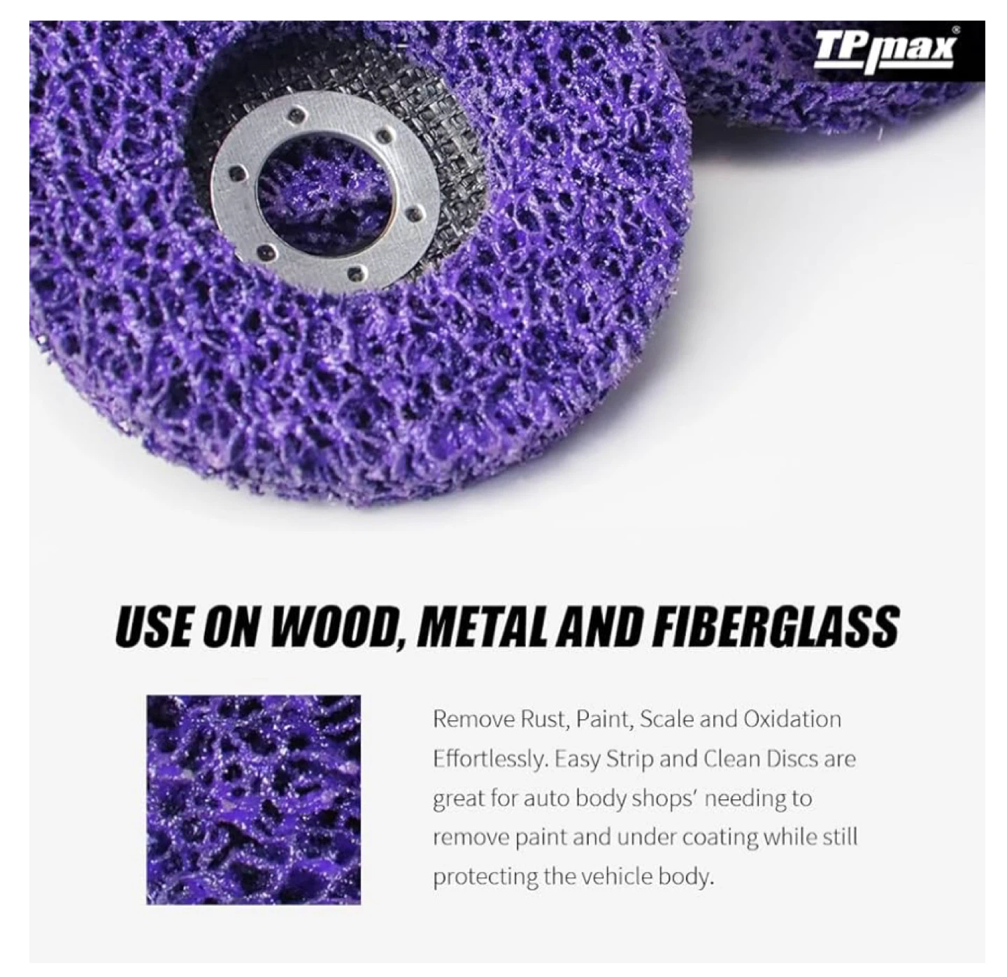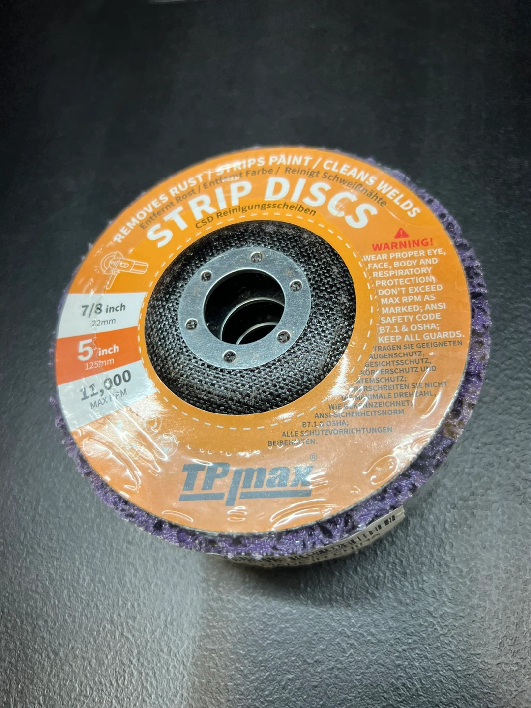 I'm selling a new set of TP-Max strip discs. They are 5 inch x 7/8 inch and are excellent for removing rust, strips paint, and cleans welds. They feature silicon carbide grit to enable quick grinding with less pressure and fiber-act as a cushion to prevent over-grinding.