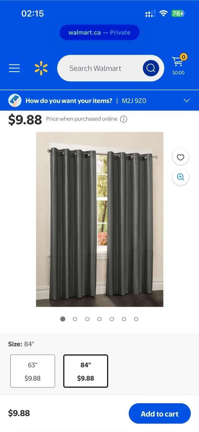 A pair of dark grey eyelet curtains is available. The size is 84 inches long. These curtains would be useful for a bedroom or living room window.