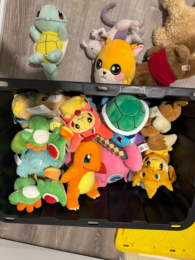 Huge bin full of Pokemon plush, including many rare and new ones, as well as Pokemon Center exclusives. Not looking to split the lot. Asking $300 for everything. The Pika Poncho ones alone are quite valuable.