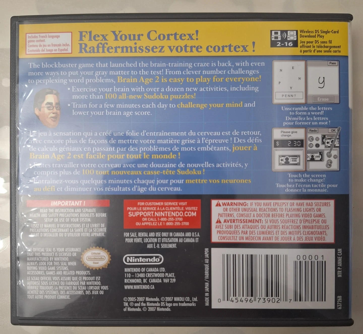 This Nintendo DS game, Brain Age 2, offers more training in minutes a day. It features a variety of puzzles and exercises to challenge your mind. This includes over 100 new Sudoku puzzles and activities to improve your concentration and lower your brain age score. It's designed for quick mental workouts whenever you have a few spare minutes!