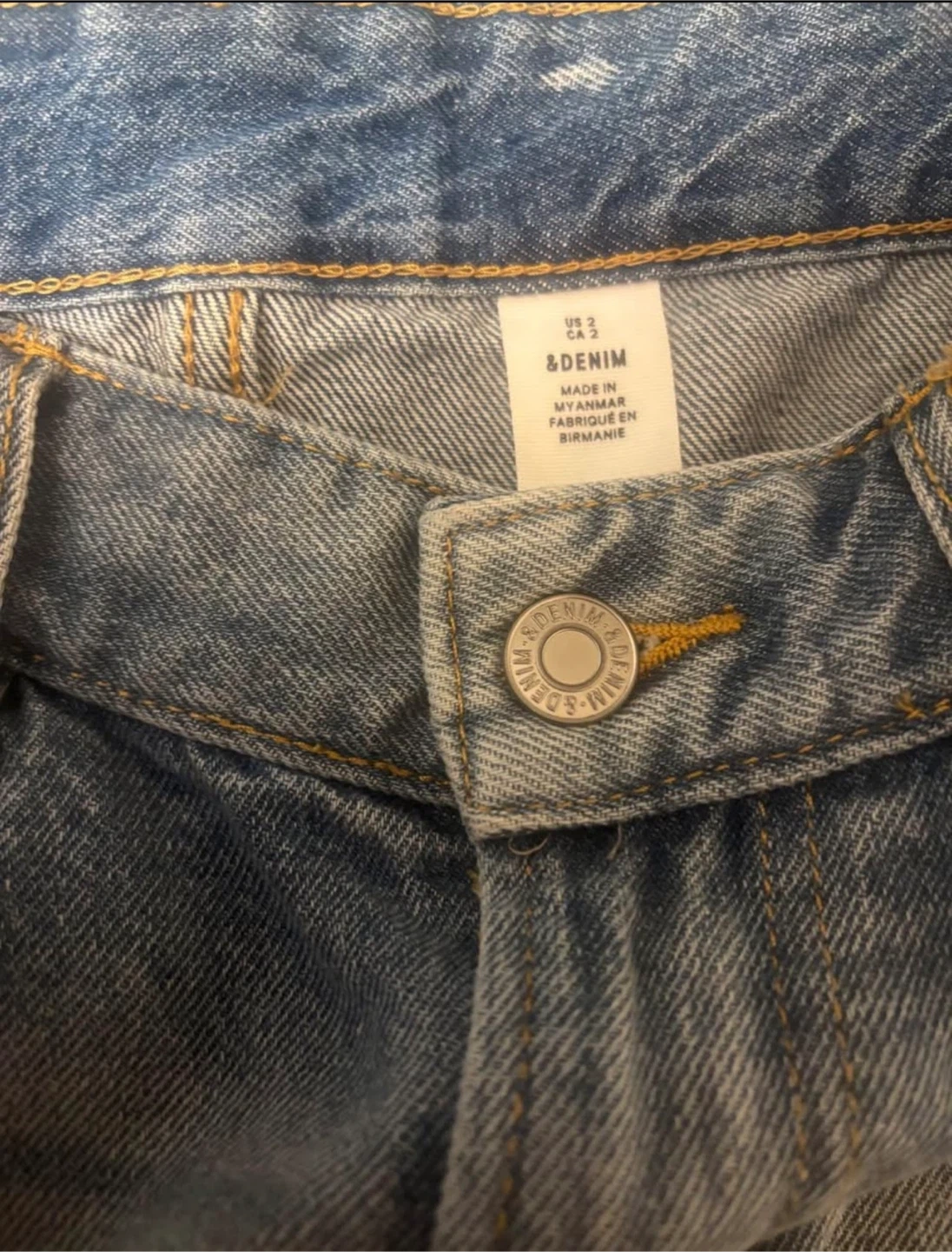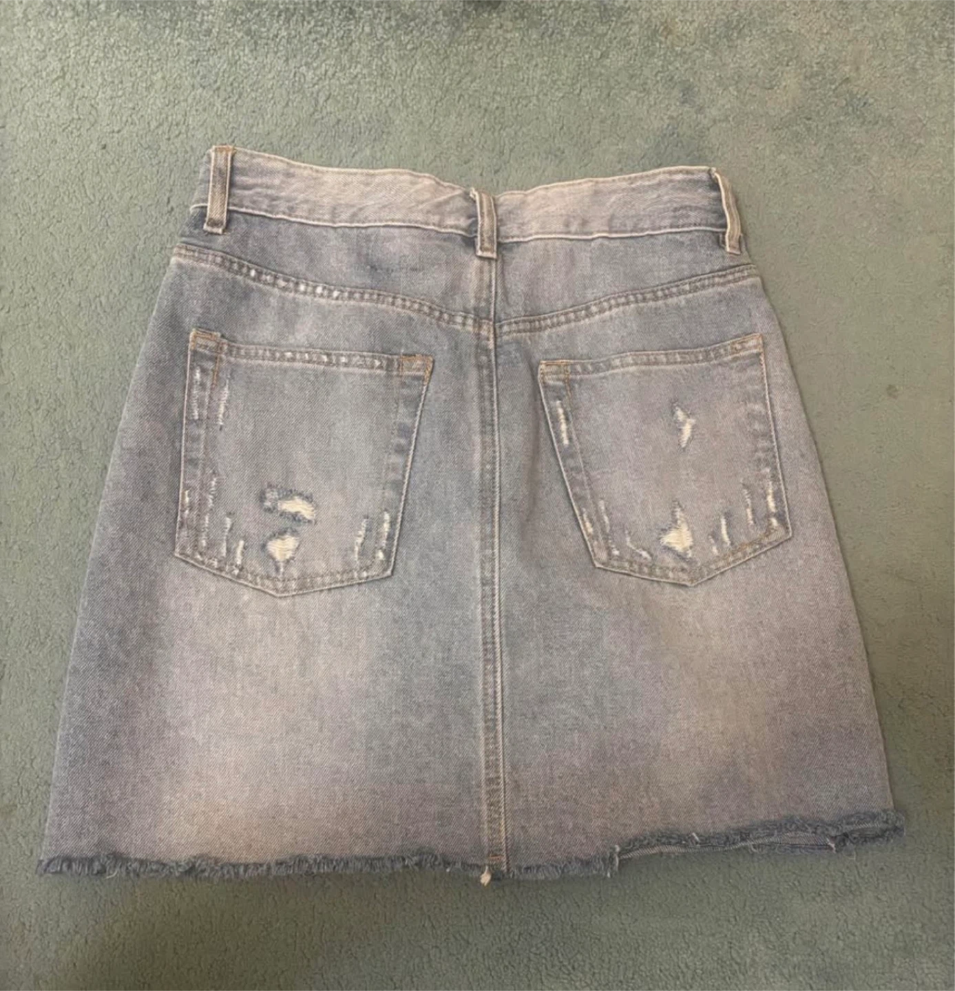 This is an H&M denim skirt. It's a light blue wash with distressed detailing. Size is US 2 in perfect condition!