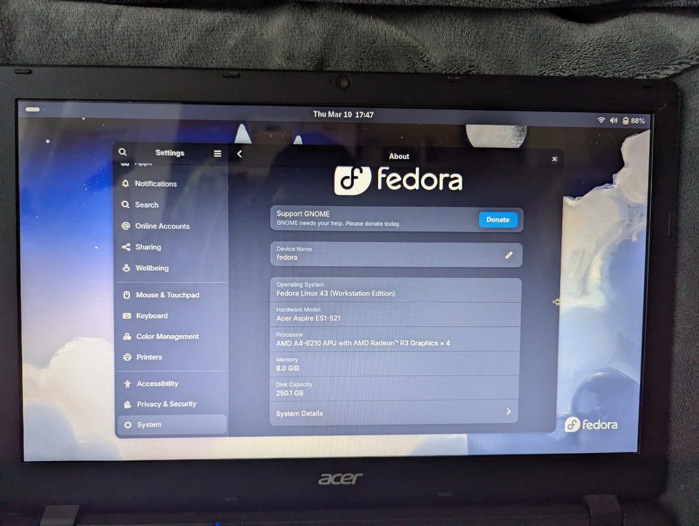 with an AMD A4-6210 APU and 1800 MHz CPU speed.