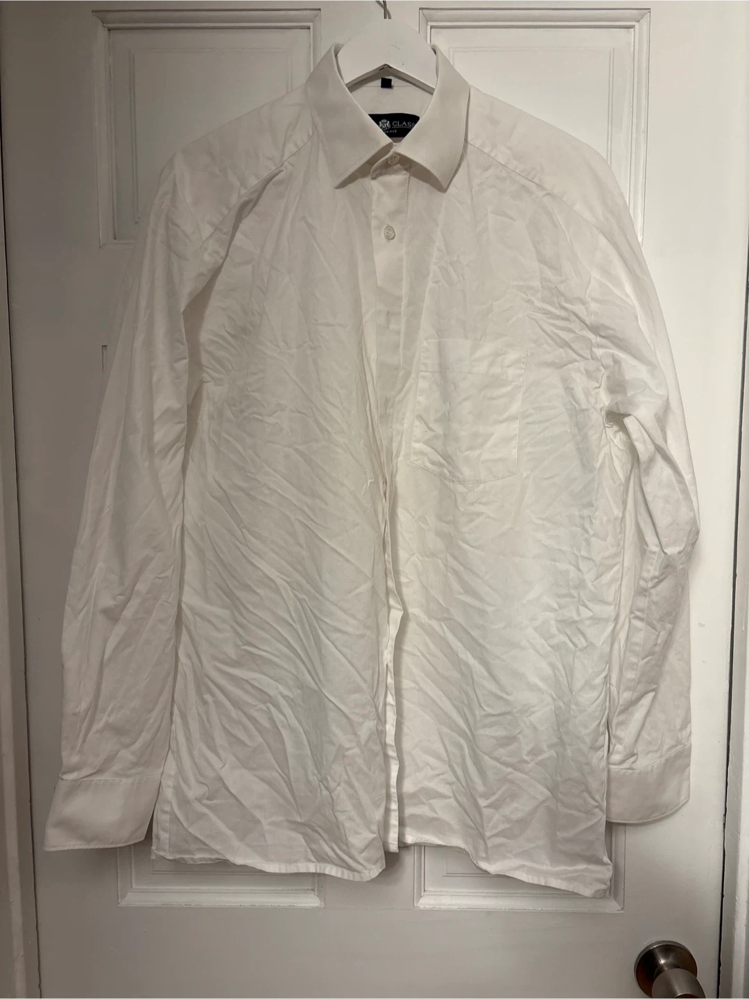 White long-sleeve dress shirt from Royal Class Conference. Size 42. It's a classic button-down style. This shirt is suitable for formal or business occasions.