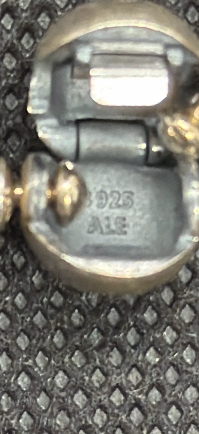 This is a Pandora sterling silver mesh bracelet. It features a branded clasp with "925 ALE" hallmarks. The mesh design gives it a unique texture.