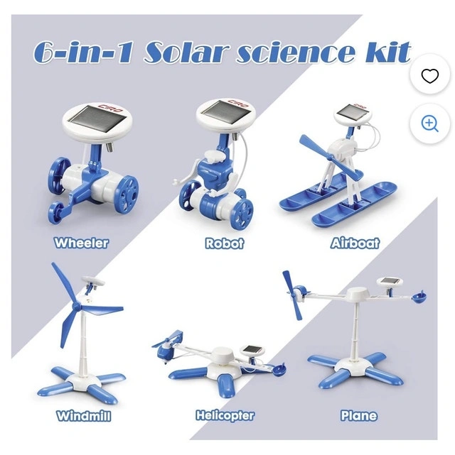 6-in-1 Solar Robot Science Kit, STEM Learning Building Toys for Kids, Powered Propeller Engines Educational Kit, Walking Robot/ Air Boat/ Windmill/ Plane 6 in 1 Solar Power Model: 6 different innovative building models, includes Robot, Airboat, Plane, Windmill, Helicopter, Wheeler.