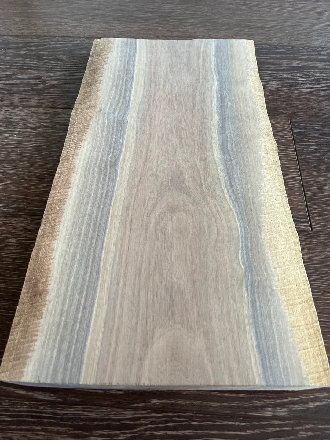 Beautiful live edge wood slab. Natural wood grain. Great for woodworking projects, shelving, or decor. Untreated wood.