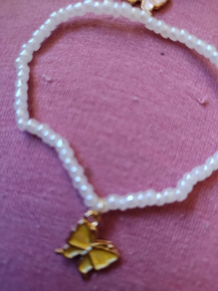 Selling a cute set of 5 beaded bracelets! Each bracelet has a unique butterfly charm in different colours: gold, green, purple , pink and blue. Perfect for adding a touch of whimsy to any outfit.