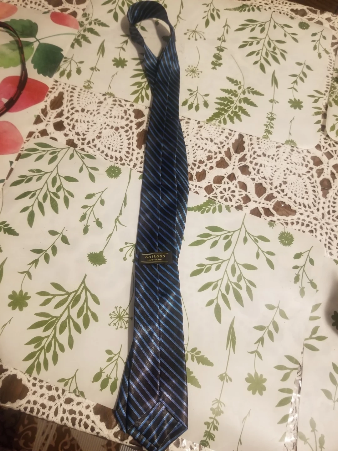 A red tie with a repeating rectangular pattern and a blue tie with stripes. One tie has a KAILONG label. Both are standard neckties. COMPLETELY FREE! Just Don't need them anymore