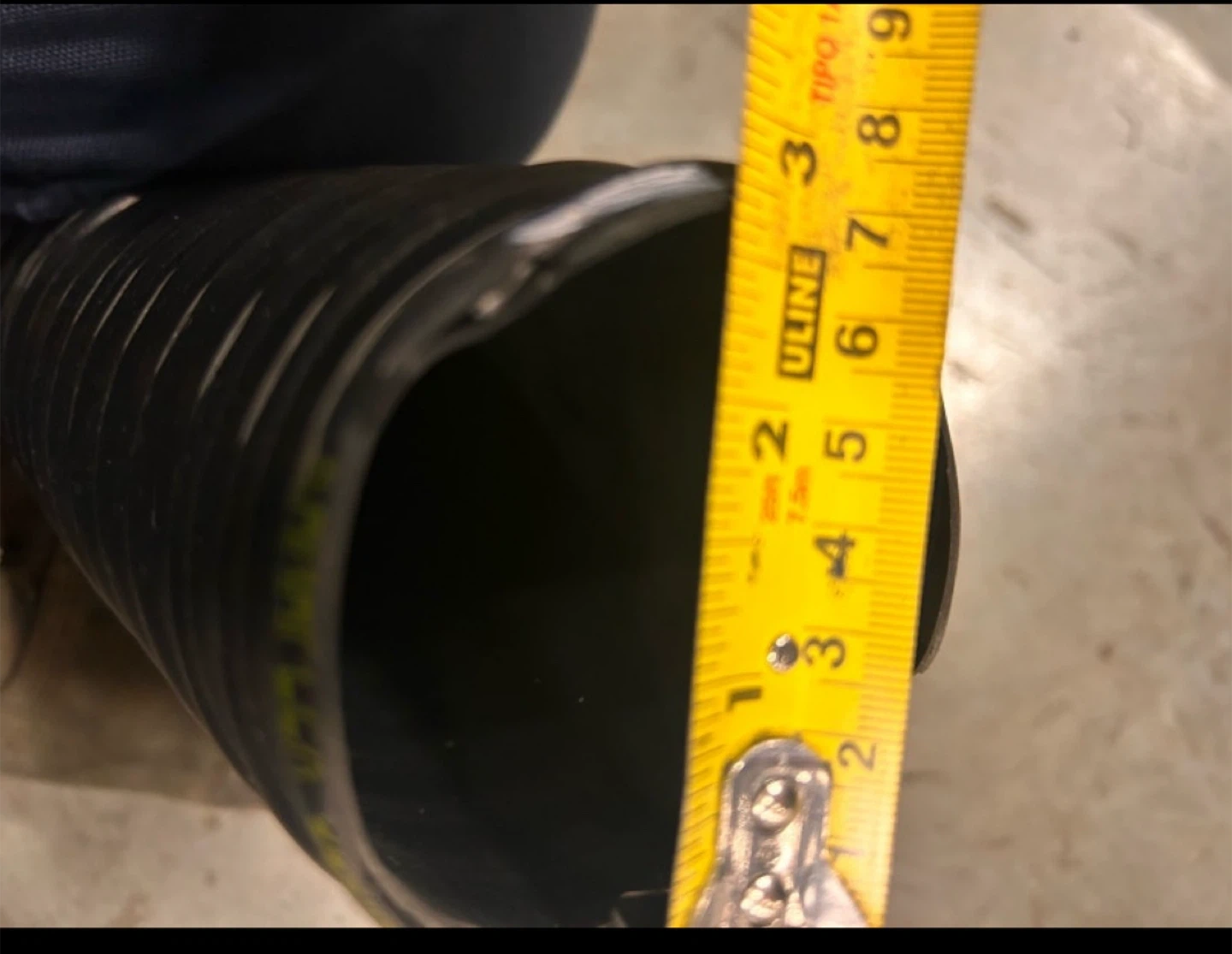 Black corrugated pipe suitable for drainage applications. It's approximately 3 inches in diameter. This pipe is flexible and durable.