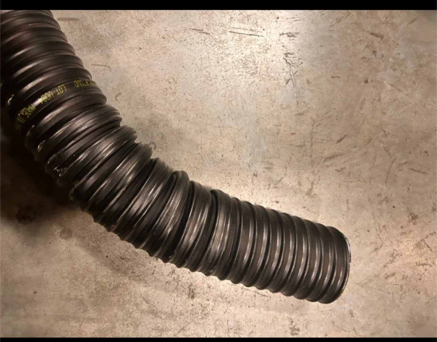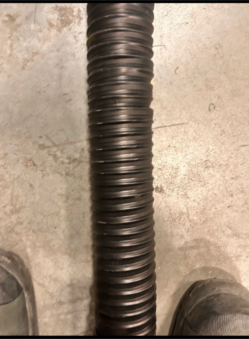 Black corrugated pipe suitable for drainage applications. It's approximately 3 inches in diameter. This pipe is flexible and durable.