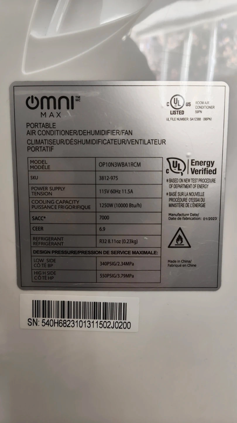 Portable air conditioner (Omni Max) – works great, I just don’t need it anymore.