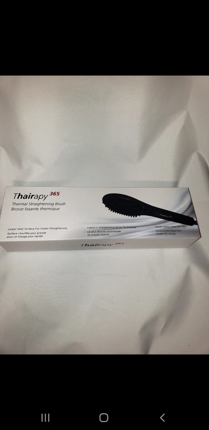 Brosse lissante thermique Thairapy 365. Dotée de la dernière technologie de brosse lissante pour un coiffage plus rapide. Chauffe jusqu'à 230°C.