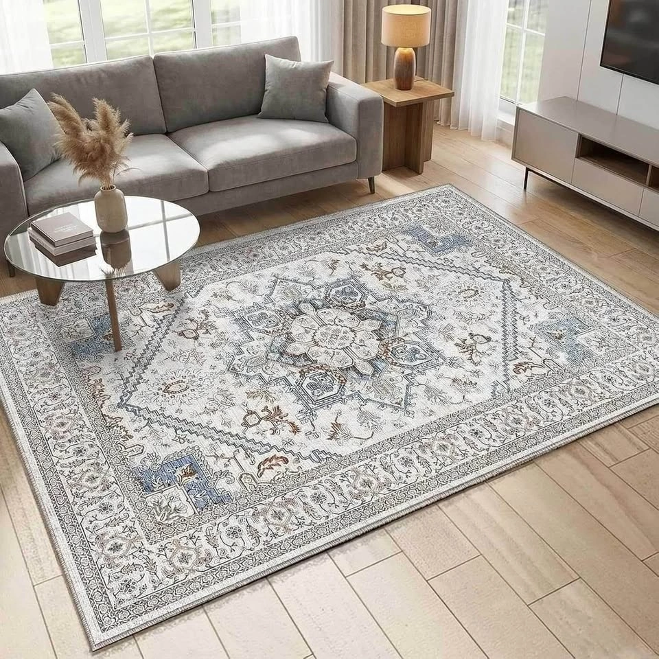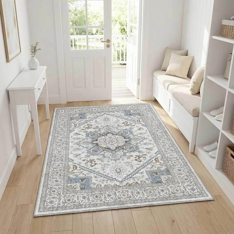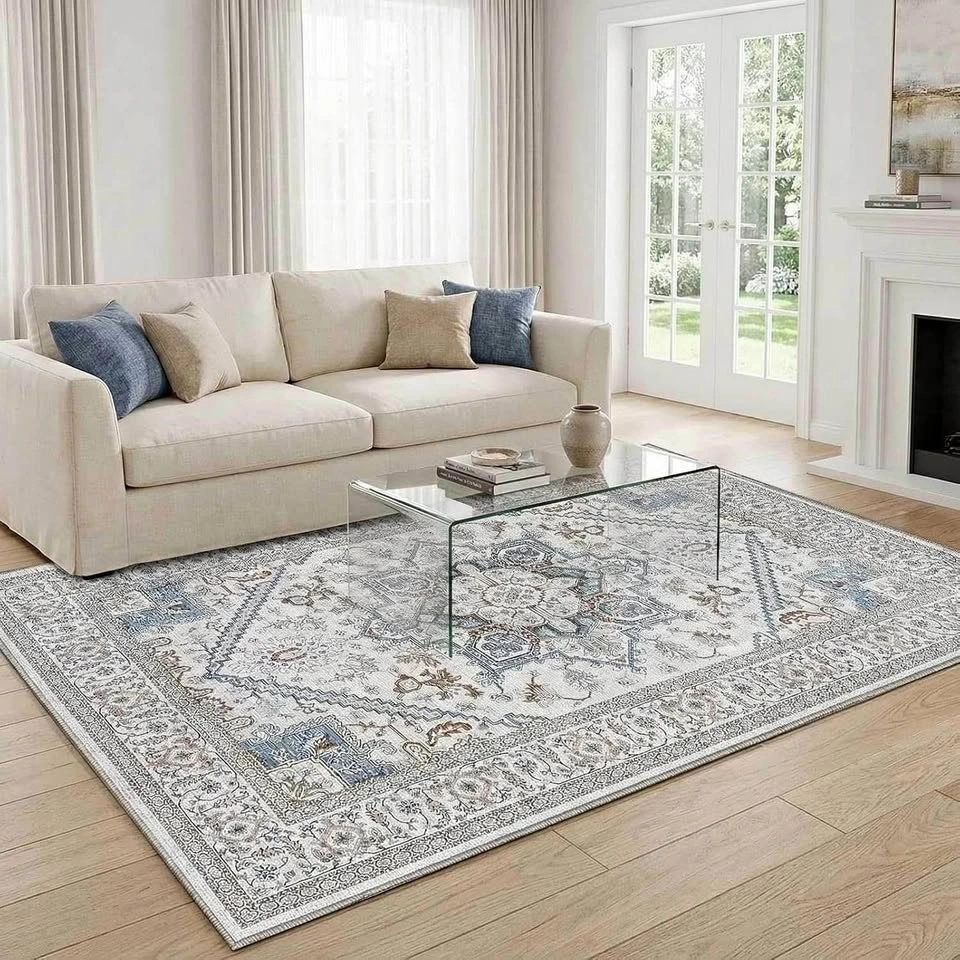 5x7 Washable Rug, Non Slip Area Rug for Living Room, Large Kitchen Bedroom Dining Room Rug, Vintage Carpet, Stain & Fade Resistant, Tapis Chambre, Meteor Blue. Item Condition: OPEN BOX/NEW.