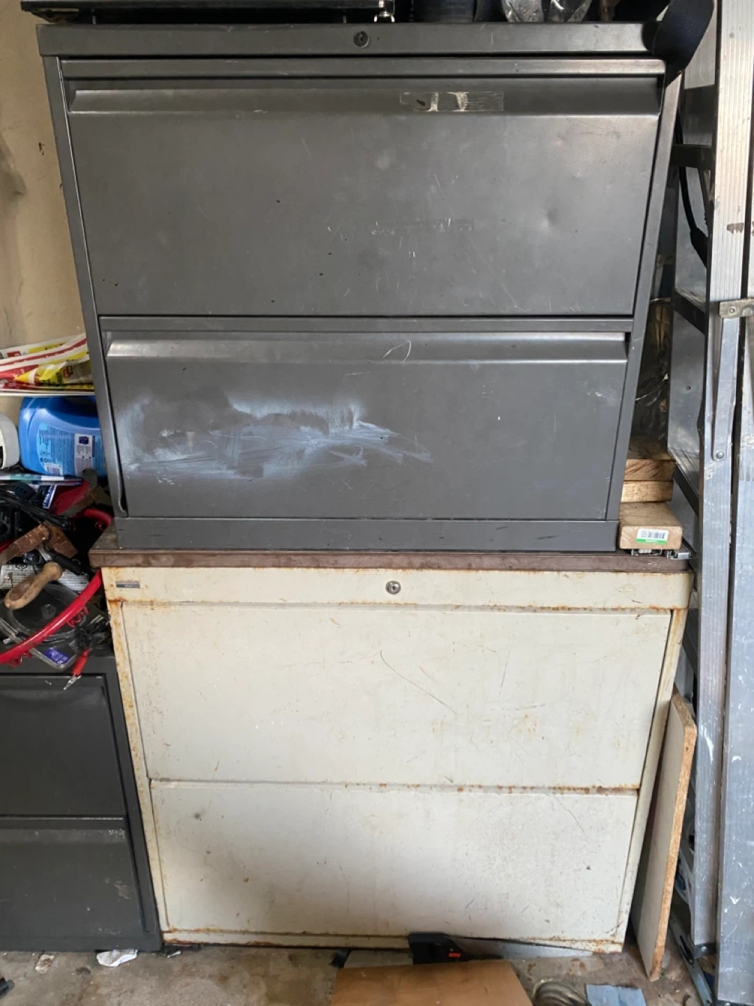 This is a storage cabinet. It has multiple drawers for storage. It's great for organizing your garage or space.