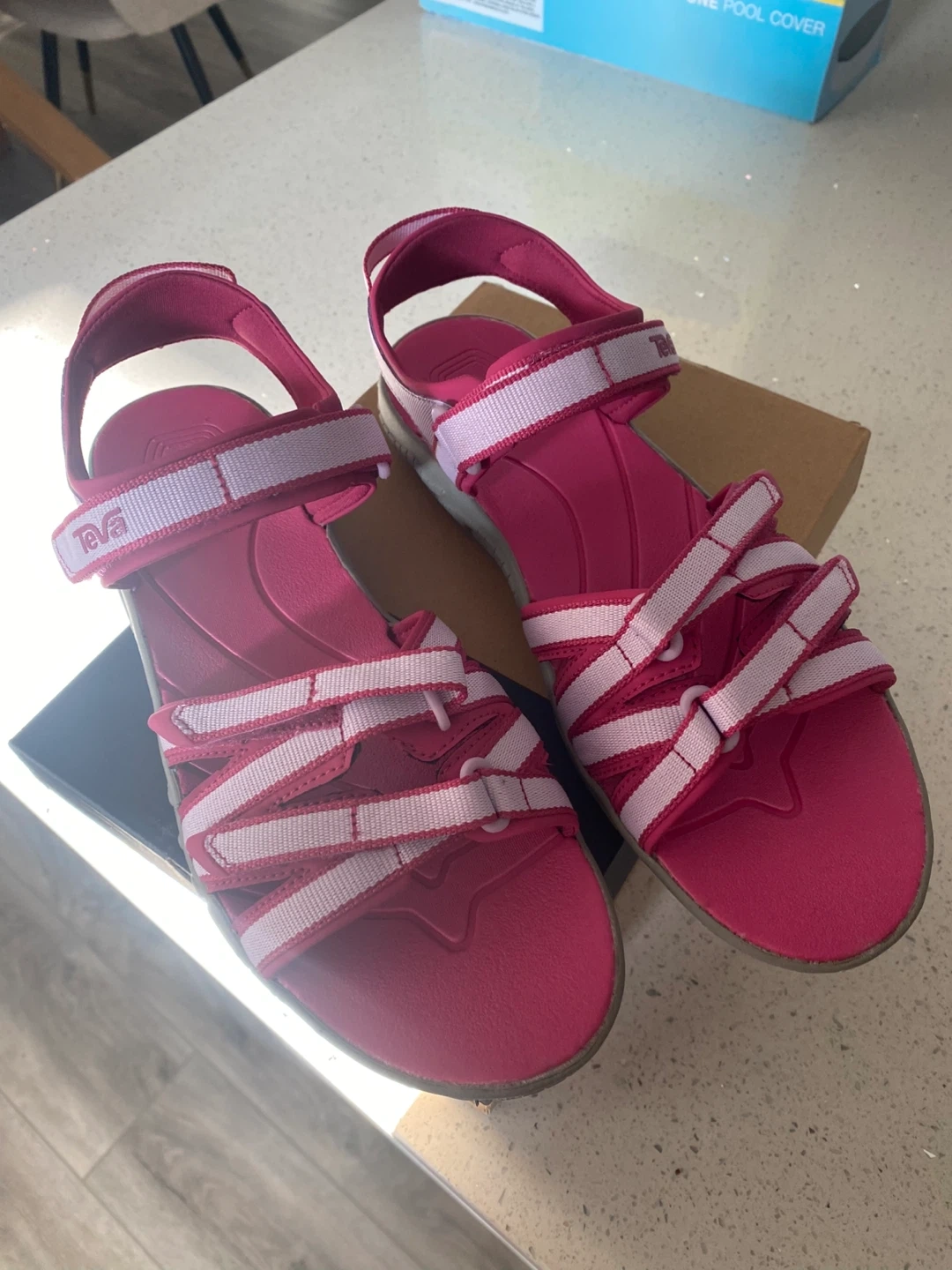 Teva kids' Y Tirra sandals in Orchid Bloom colour. Adjustable hook-and-loop closures for a secure fit. Durable rubber outsole for traction. Perfect for active outdoor play! Got it out of a Amazon return box size 7