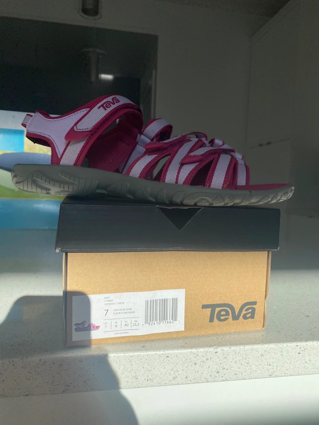Teva kids' Y Tirra sandals in Orchid Bloom colour. Adjustable hook-and-loop closures for a secure fit. Durable rubber outsole for traction. Perfect for active outdoor play! Got it out of a Amazon return box size 7